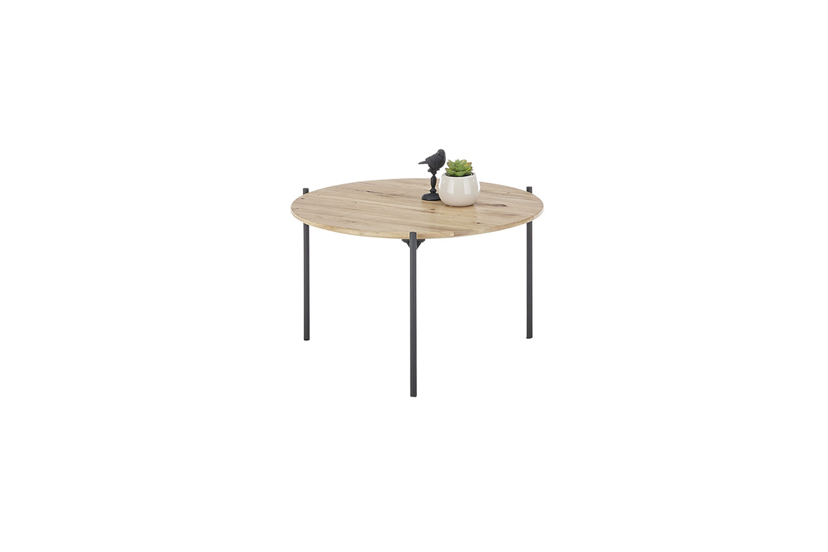 Tugevad metallist jalad on viimistletud musta mati värviga, pakkudes stabiilsust ning modernset kontrasti naturaalse puidupinnaga.
