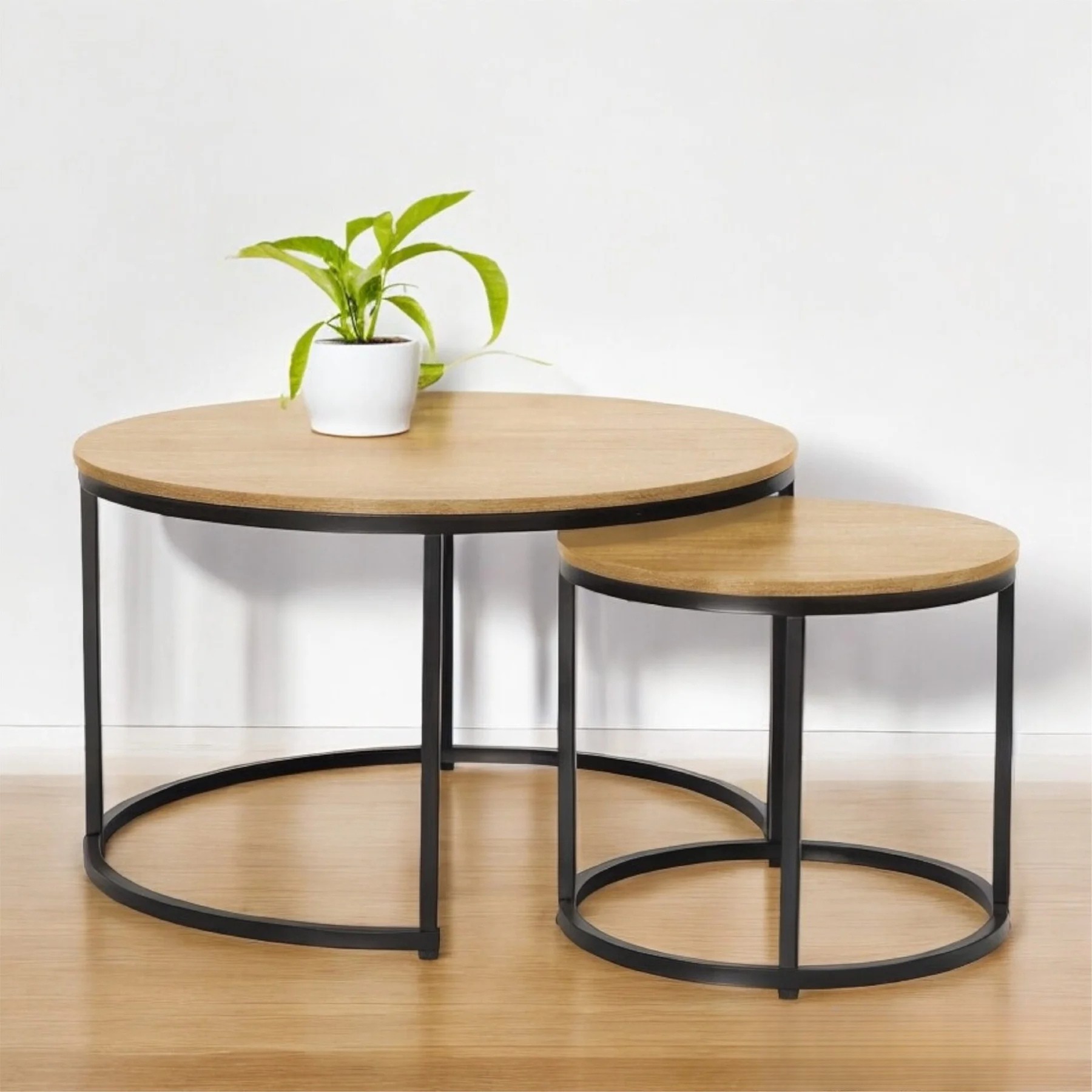 - Komplekti kuulub kaks lauda, mille mõõdud on D80 x H48 cm ja D48 x H42 cm, pakkudes paindlikke paigutusvõimalusi ja sobitudes erinevate ruumilahendustega.