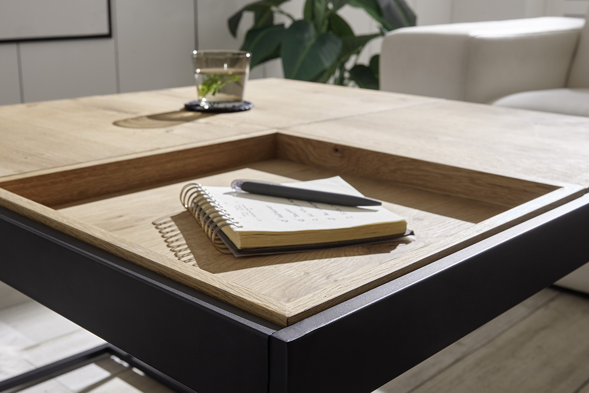 Diivanilaud Larkan on modernse ja nutika disainiga diivanilaud, mis ühendab praktilisuse ja stiilse välimuse. Selle eriline pöörlevate lauaplaatide lahendus muudab laua mitmekülgseks ja igapäevases kasutuses eriti mugavaks.