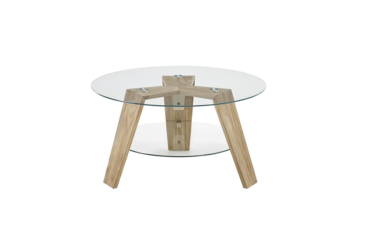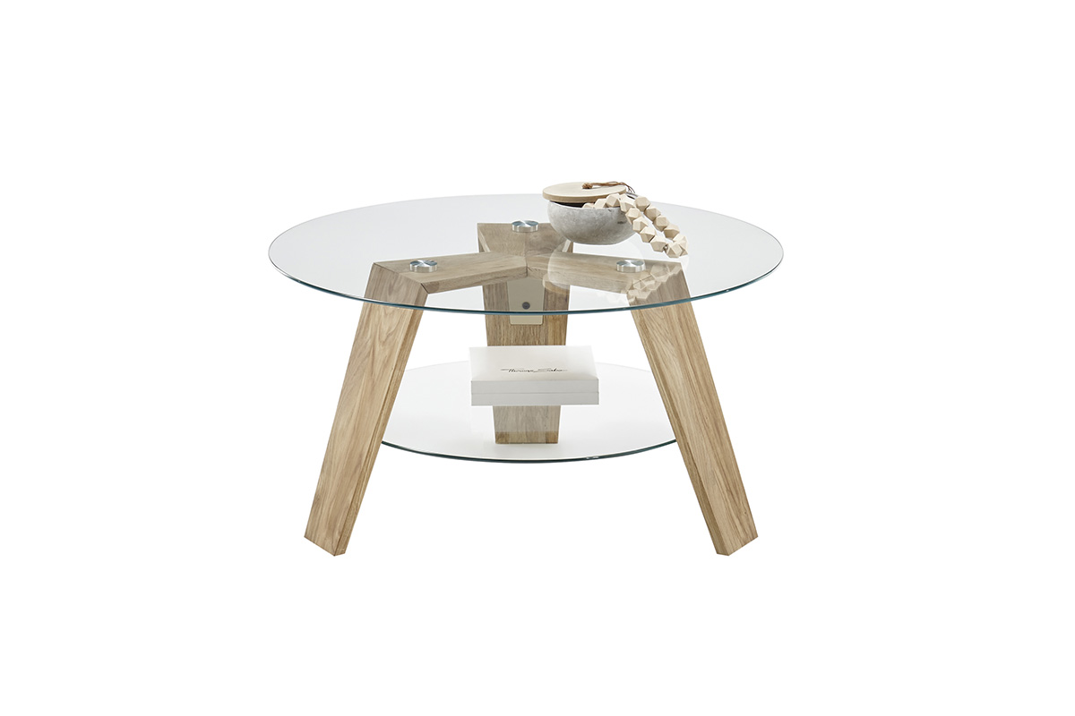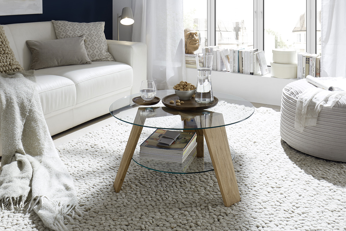 Diivanilaud Lubin on modernse ja õhulise disainiga ümmargune diivanilaud, mis ühendab klaasi elegantsi ja naturaalse puidu soojust. Selle kerge ja tasakaalustatud vorm muudab laua stiilseks ning ajatu ilmega sisustuselemendiks igas elutoas.
