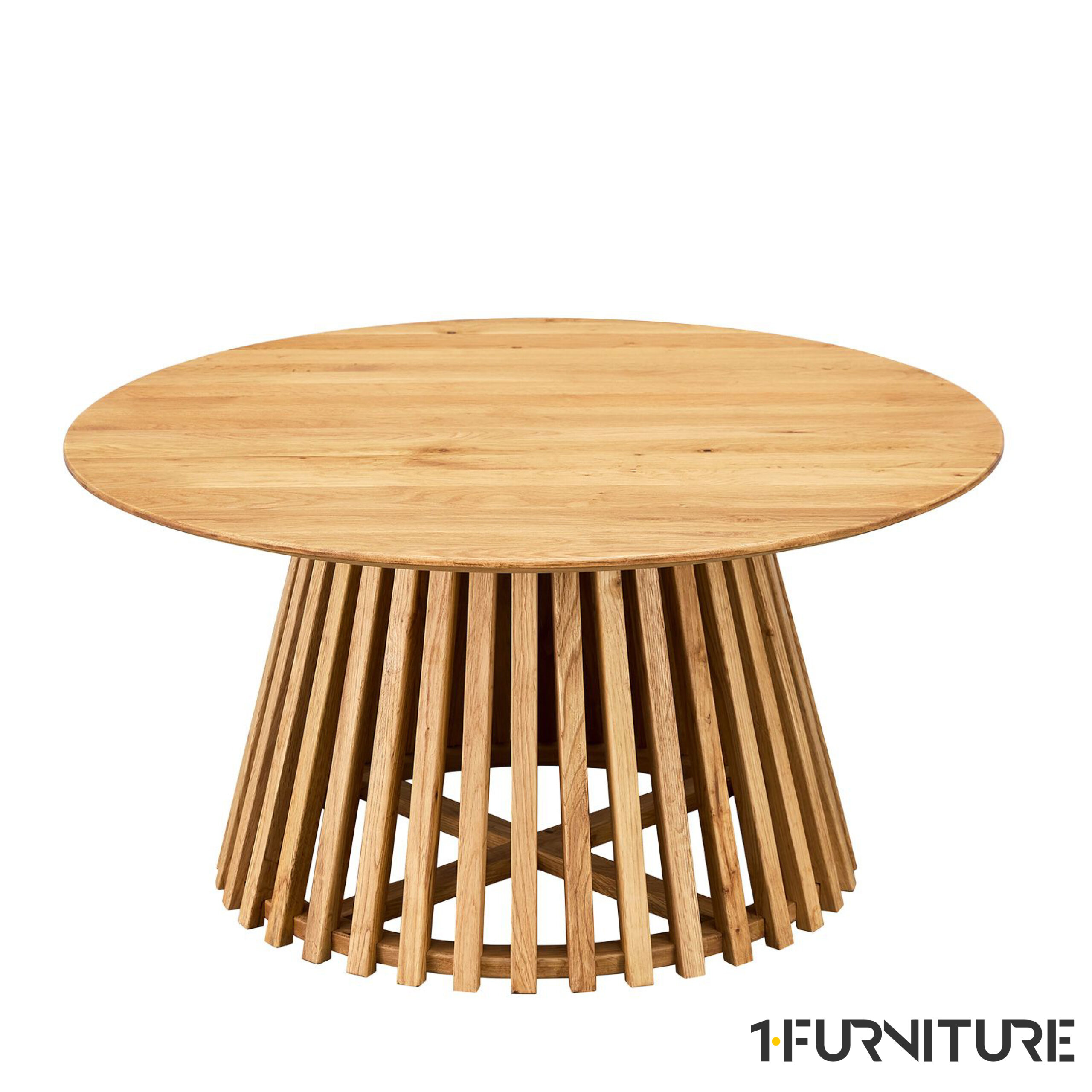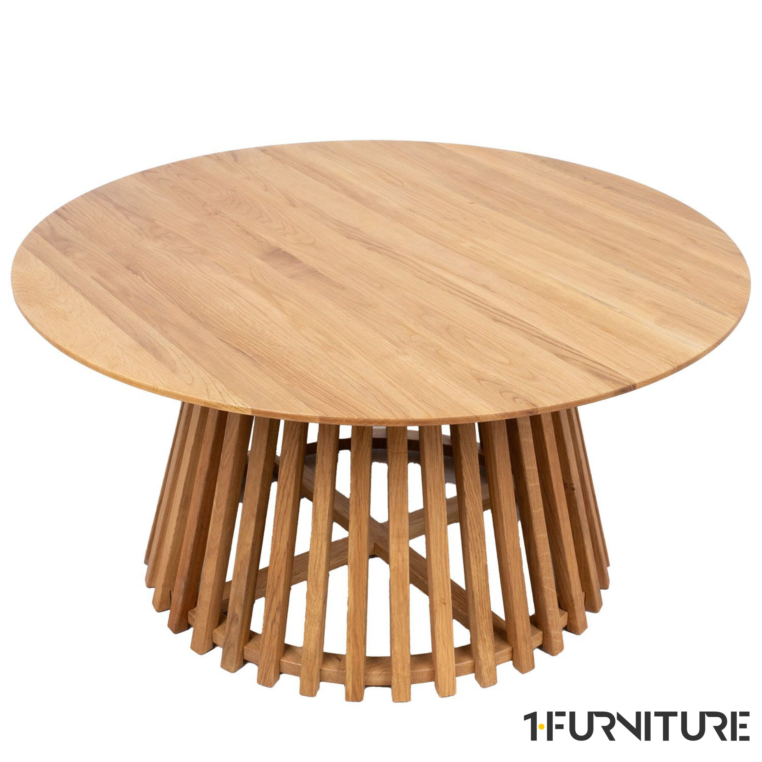 • Unikaalse välimuse loob laua ümmargune alus, mis on kaetud kitsaste jalakapuust liistudega. See detailne viimistlus annab lauale erilise iseloomu ja peene elegantsi, luues visuaalselt huvitava ja modernse disaini.