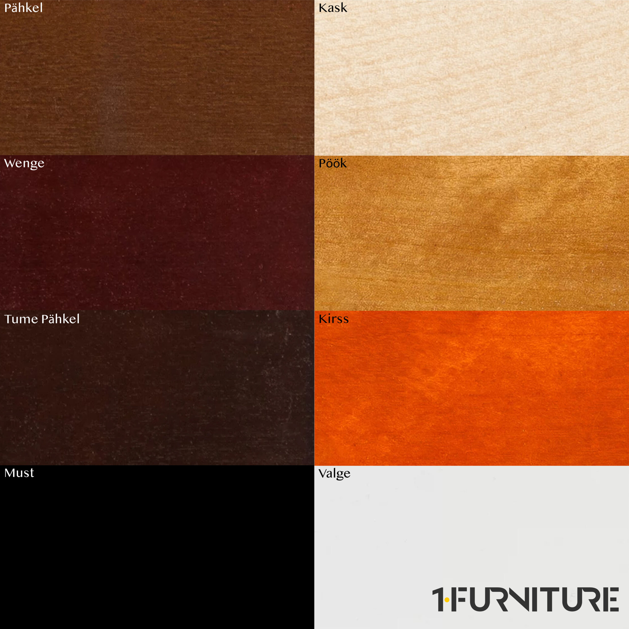 Valge, Kask, Pöök, Kirss, Pähkel, Tume Pähkel, Wenge, Must