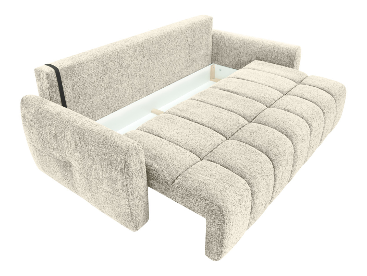• Kloud diivanvoodi paistab silma oma pehme vormi, kergelt ümardatud joonte ja elegantse beeži tooniga, mis loob hubase ja modernse üldmulje ning sobitub erinevatesse interjööridesse.