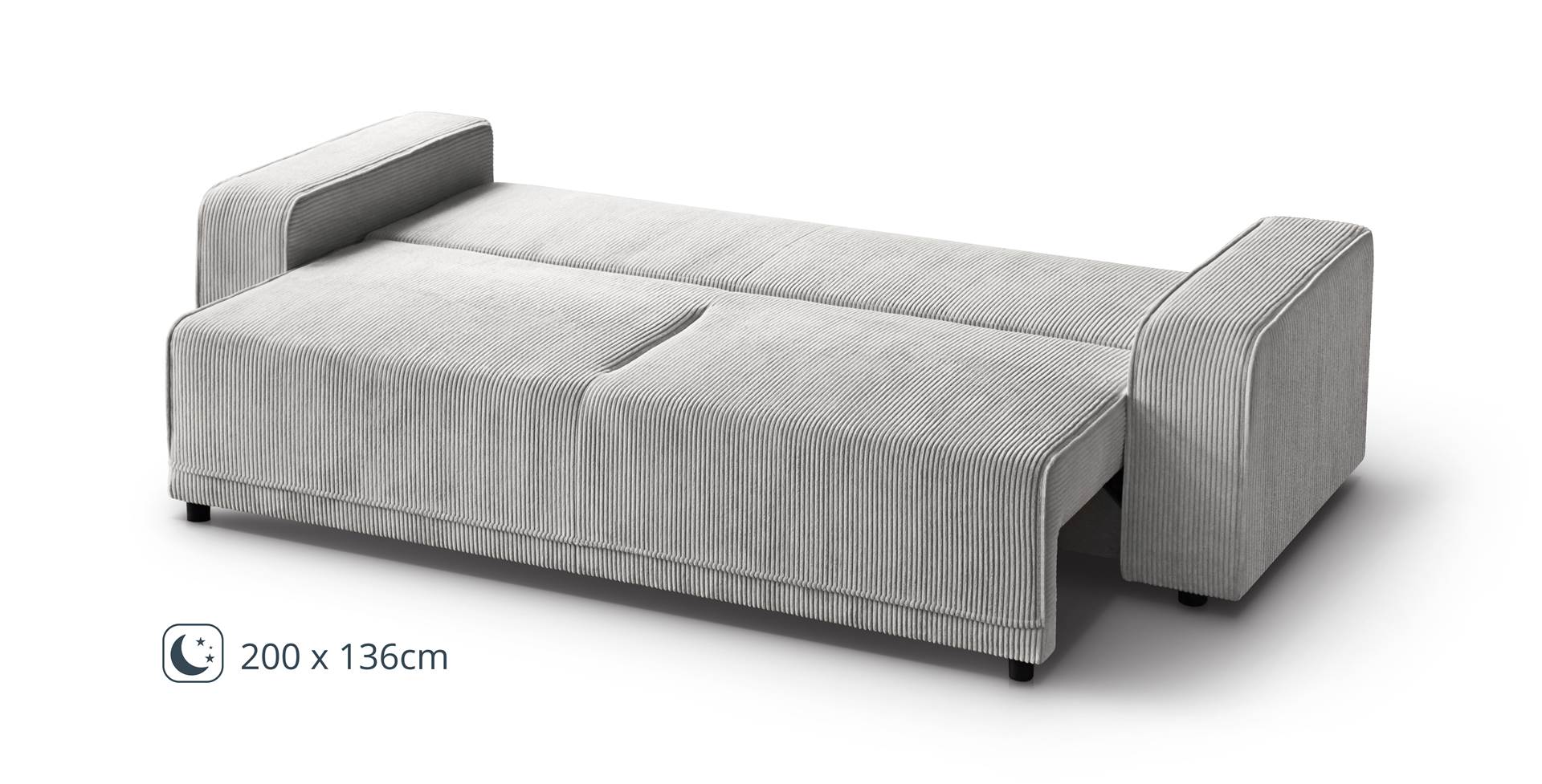 Diivanil on magamisfunktsioon, mille abil saab selle lihtsalt muuta mugavaks voodiks (magamispind: 200 × 136 cm).