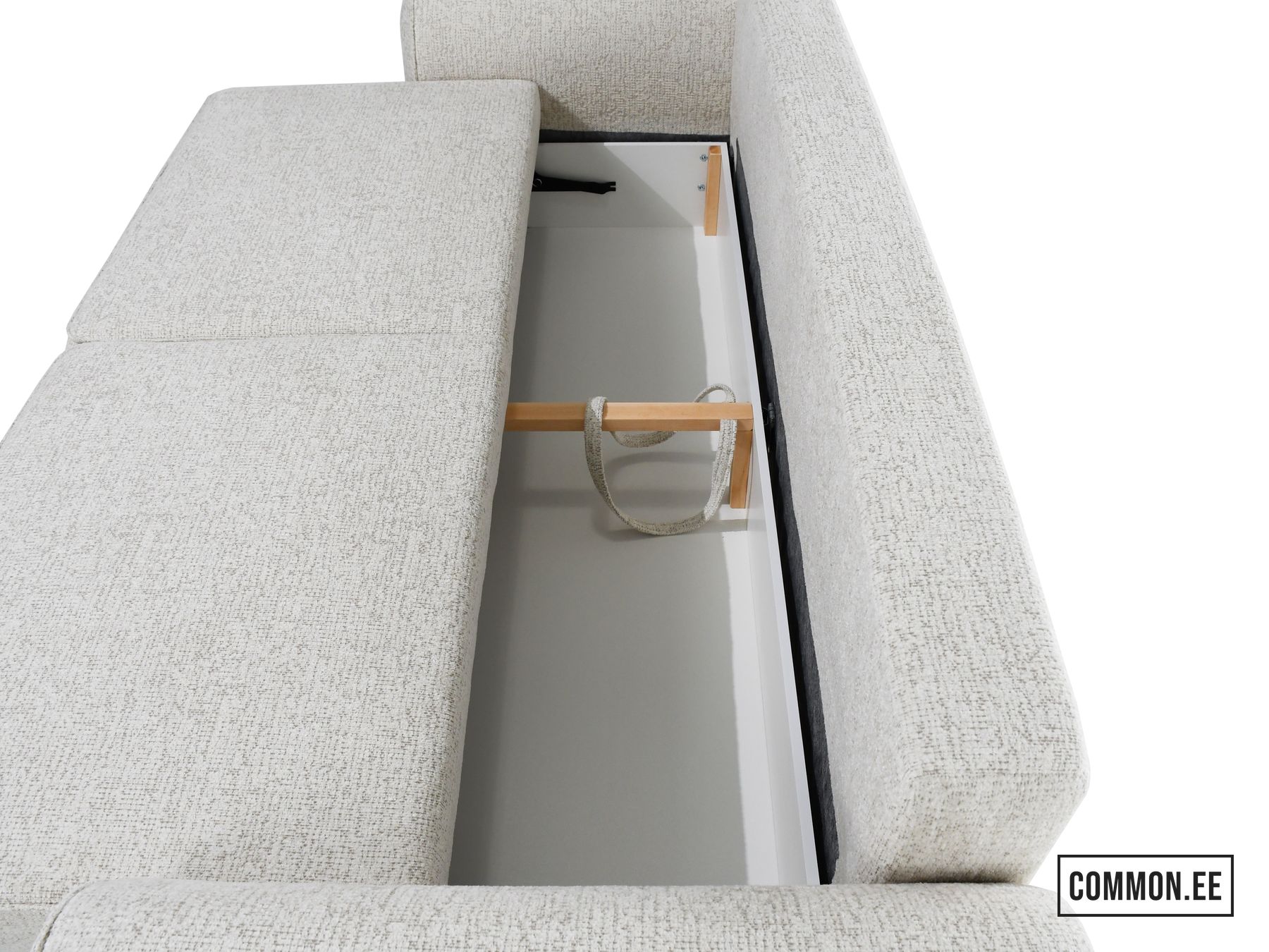 Integreeritud hoiuruum sobib ideaalselt voodipesu ja tekkide hoiustamiseks, pakkudes praktilist lisaruumi.