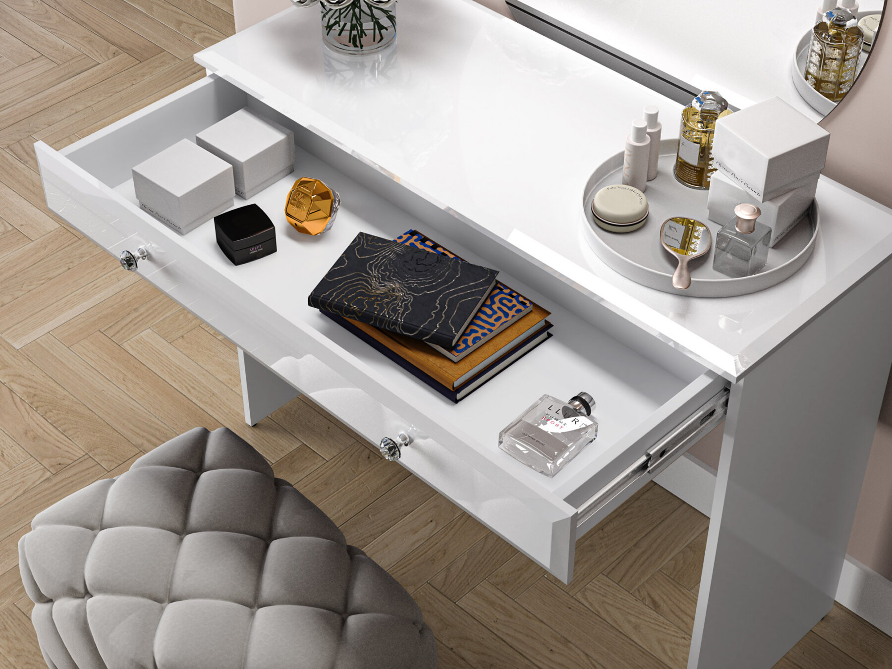 Iga modernne ja enesekindel naine vajab oma isiklikku kohta hoolduseks ja meikimiseks. Glami 05-01 tualettlaud on loodud just selle vajaduse täitmiseks.