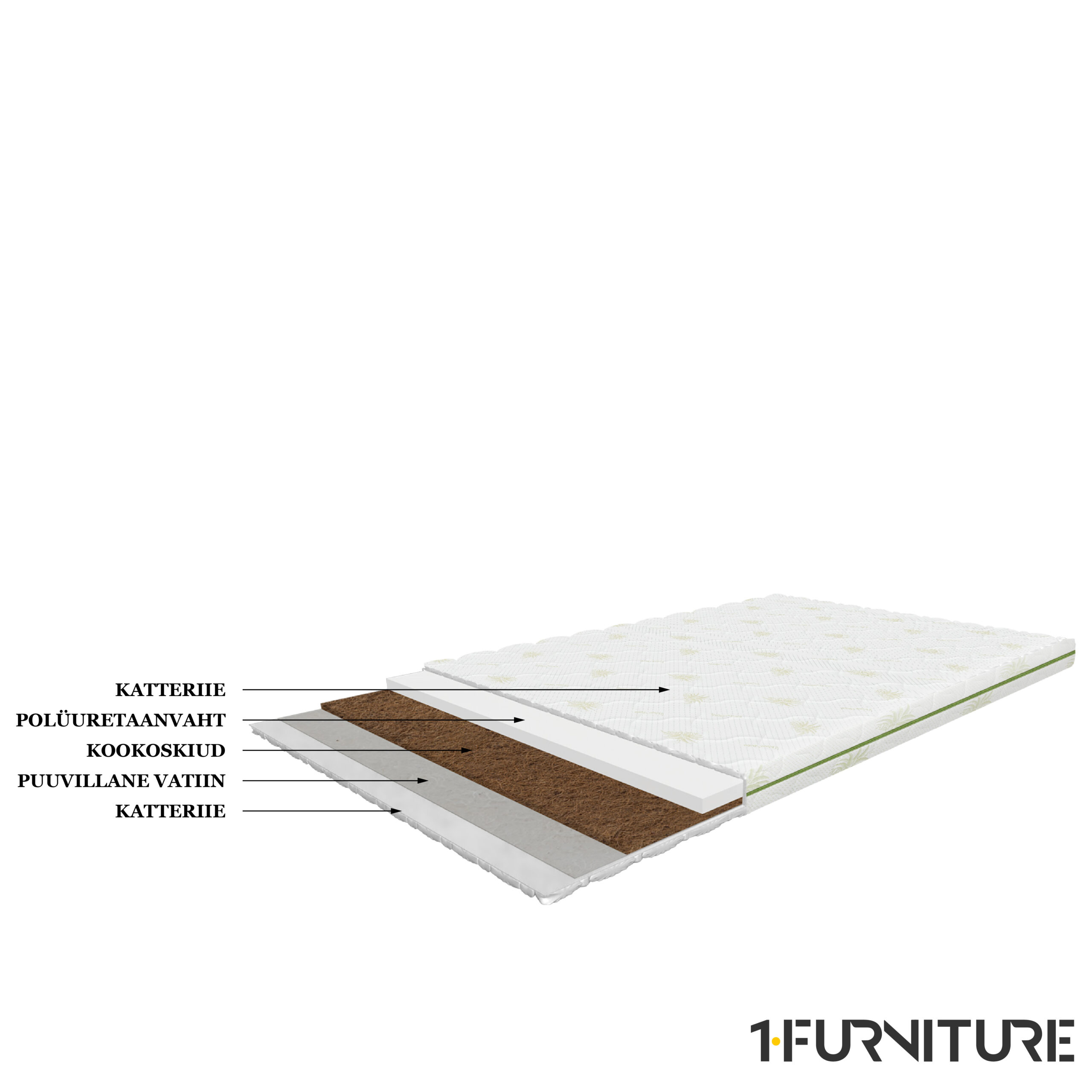 - Peamiseks sisuks on vahtpolüuretaan ja kookospähklist valmistatud kiud.