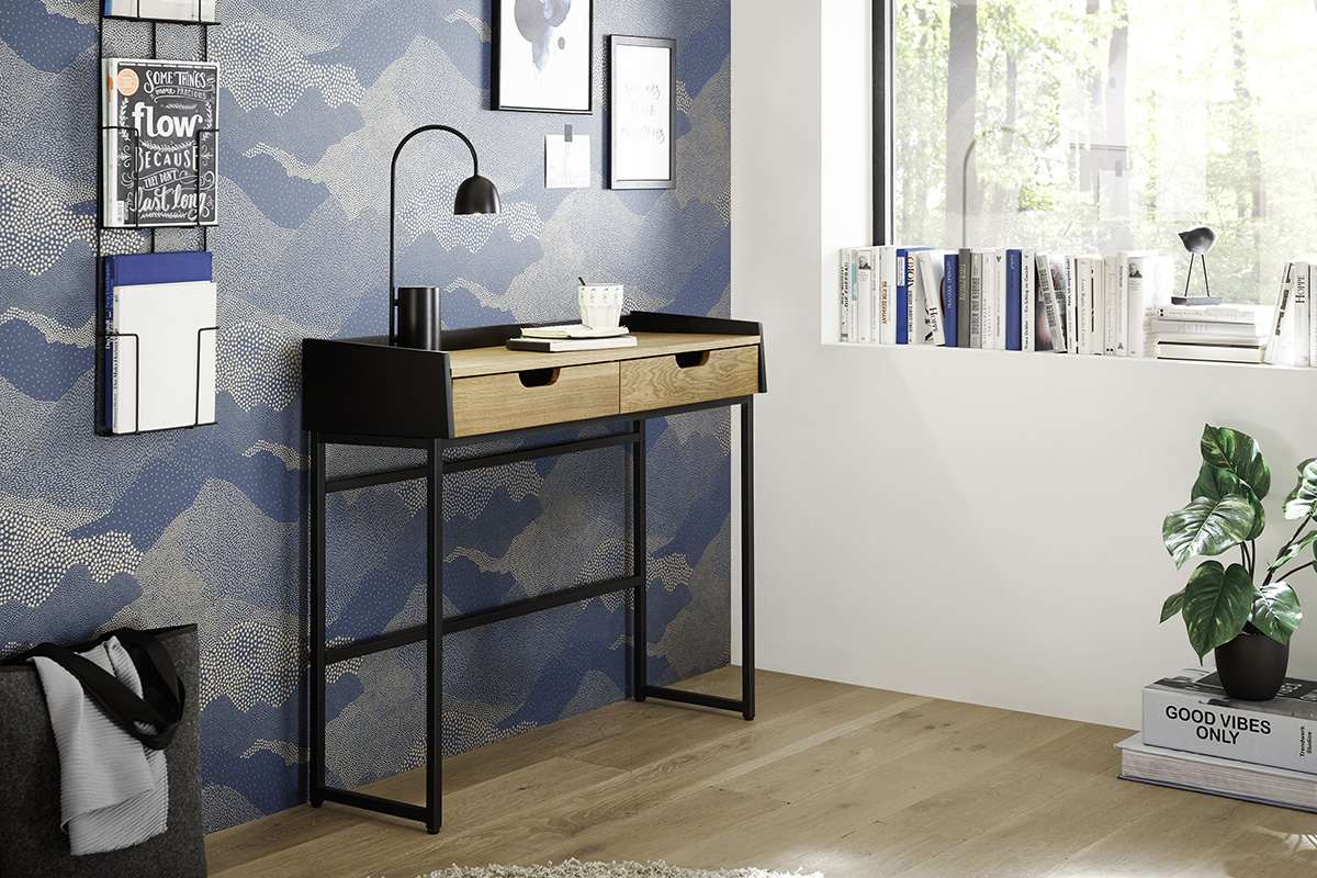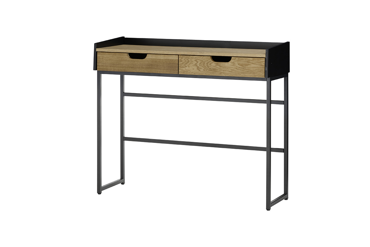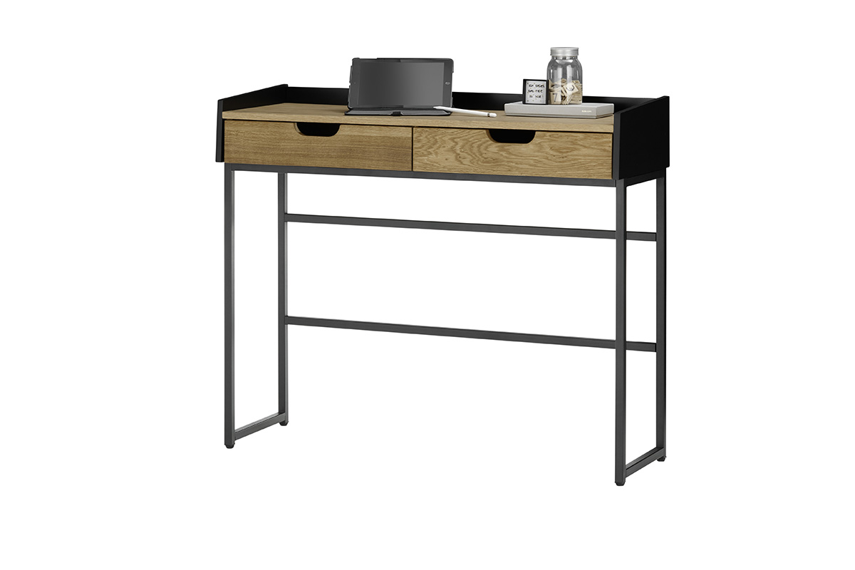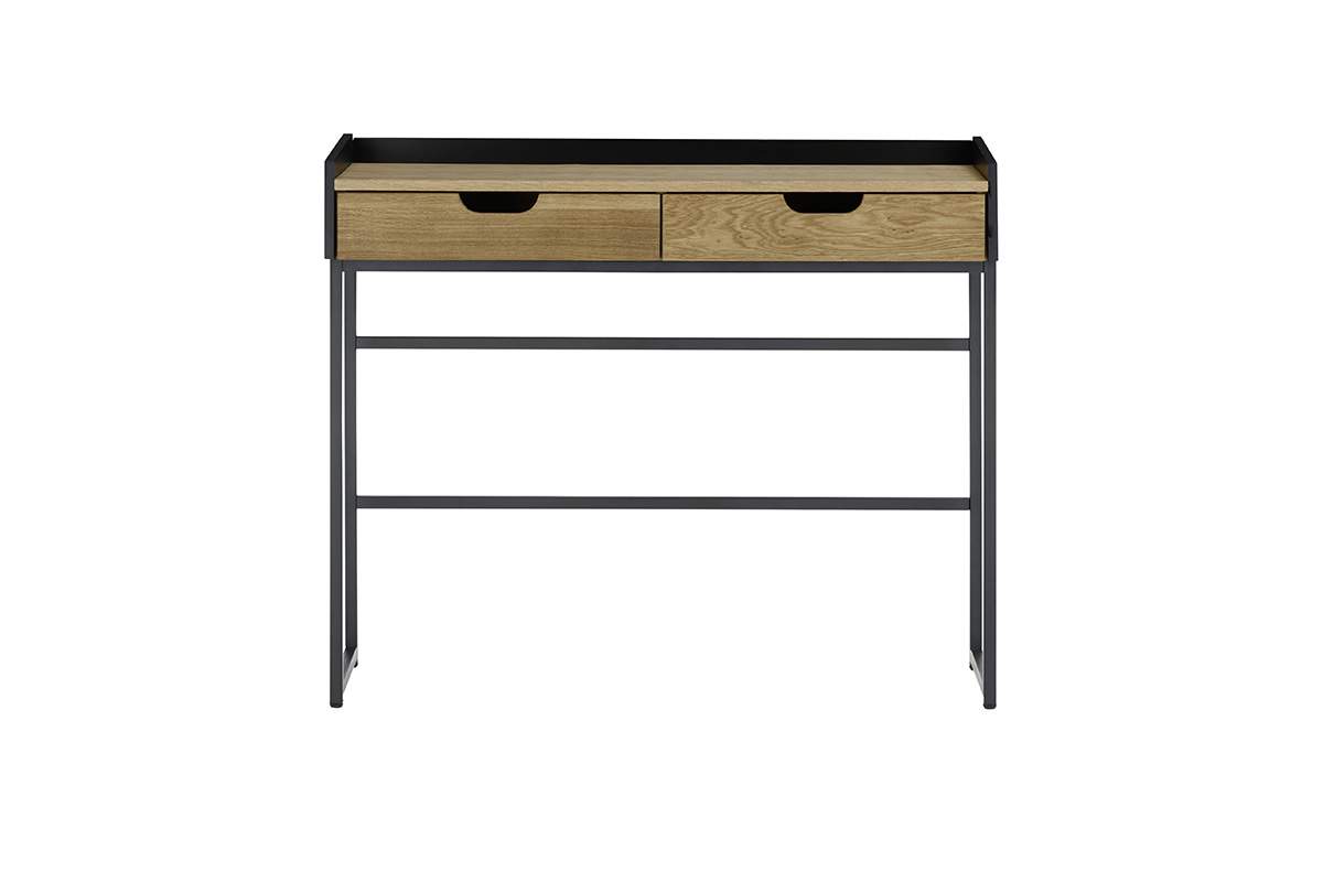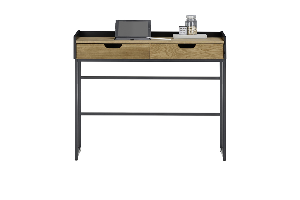 Laua pealisosa ja sahtlite esipaneelid on valmistatud naturaalsest tammepuidust või tamme furniirist, mis on viimistletud õliga, andes mööblile sooja ja looduslähedase ilme. Must raamiosa loob kontrasti ning lisab lauale modernset iseloomu.