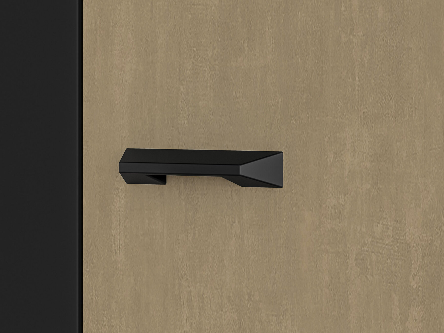 Mööbli disain ja dünaamiline viimistluste kombinatsioon – soe Craft-tamm, toore terase toon Premium Steel ning kontrastne must – rõhutavad noorte individuaalset stiili ja isikupära.