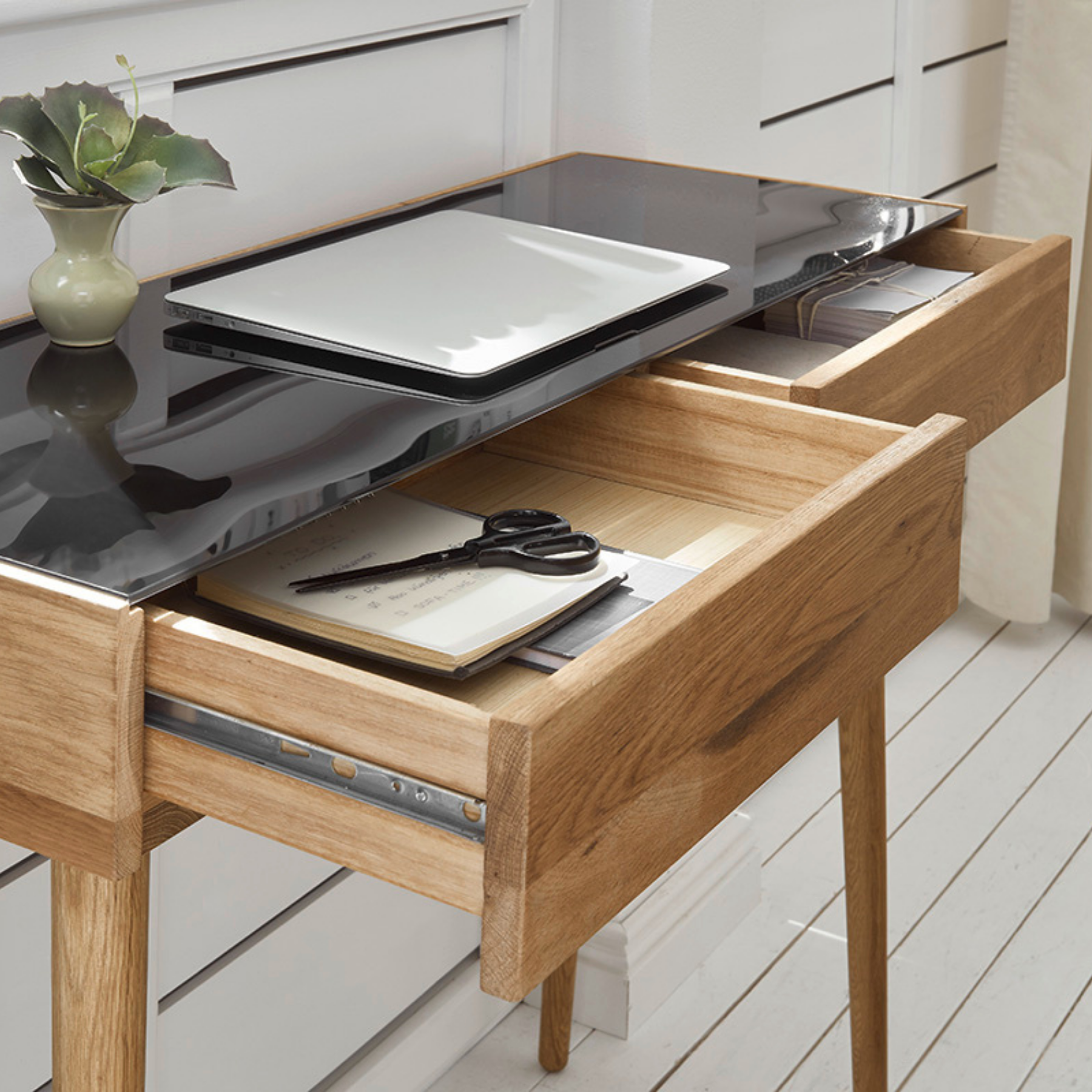 Kerge ja õhuline disain muudab Nata konsoollaua sobivaks ka väiksematesse ruumidesse. Kaks praktilist sahtlit pakuvad mugavat hoiuruumi igapäevastele esemetele, hoides pinna korrastatuna ja minimalistliku ilmega.