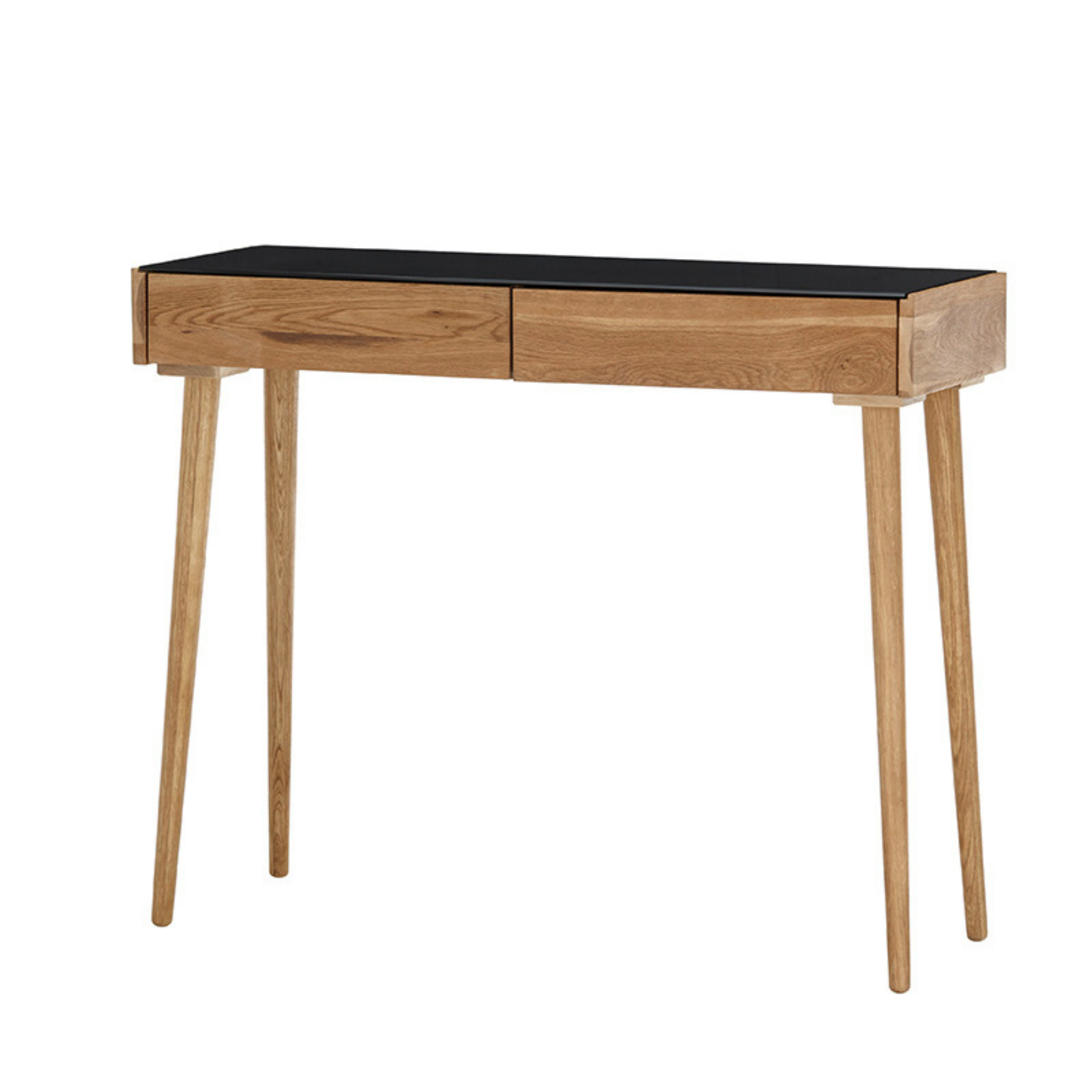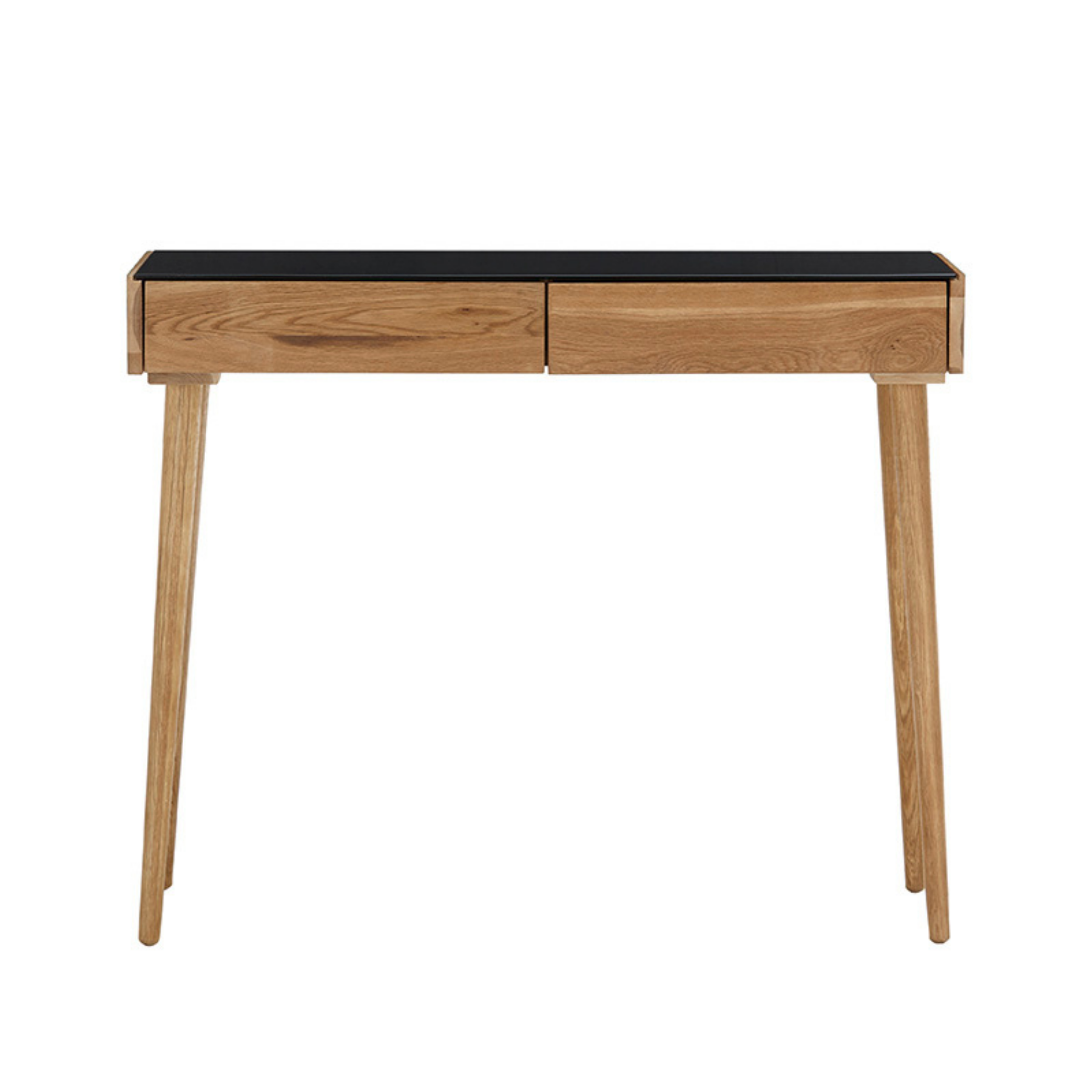 Konsoollaud Nata on elegantne ja funktsionaalne tammepuidust konsoollaud, mis sobib suurepäraselt esikusse, elutuppa või kodukontorisse. Naturaalne õlitatud tammepuit toob ruumi soojust ja ajatut ilmet, samas kui musta lakitud klaasist pealispind lisab modernset kontrasti ja viimistletud välimust.
