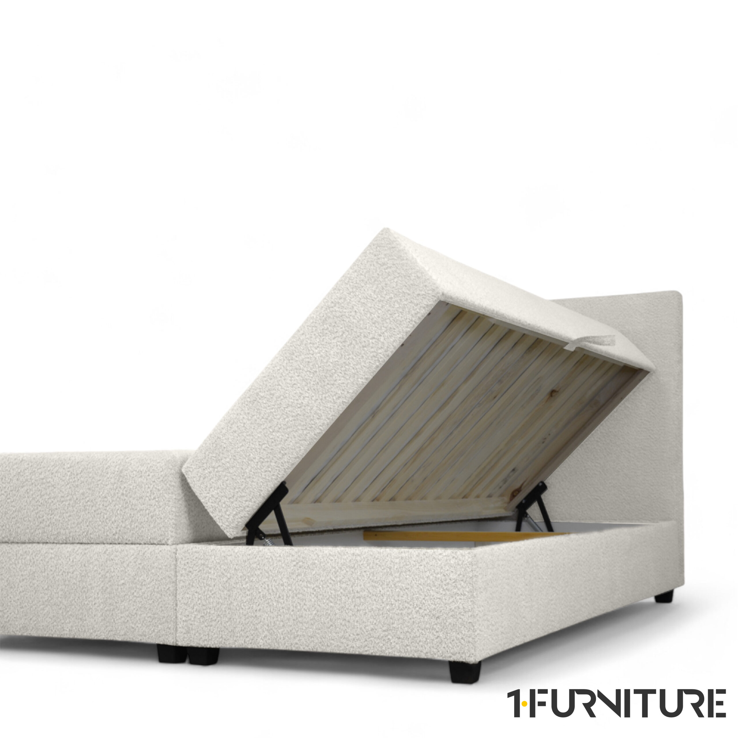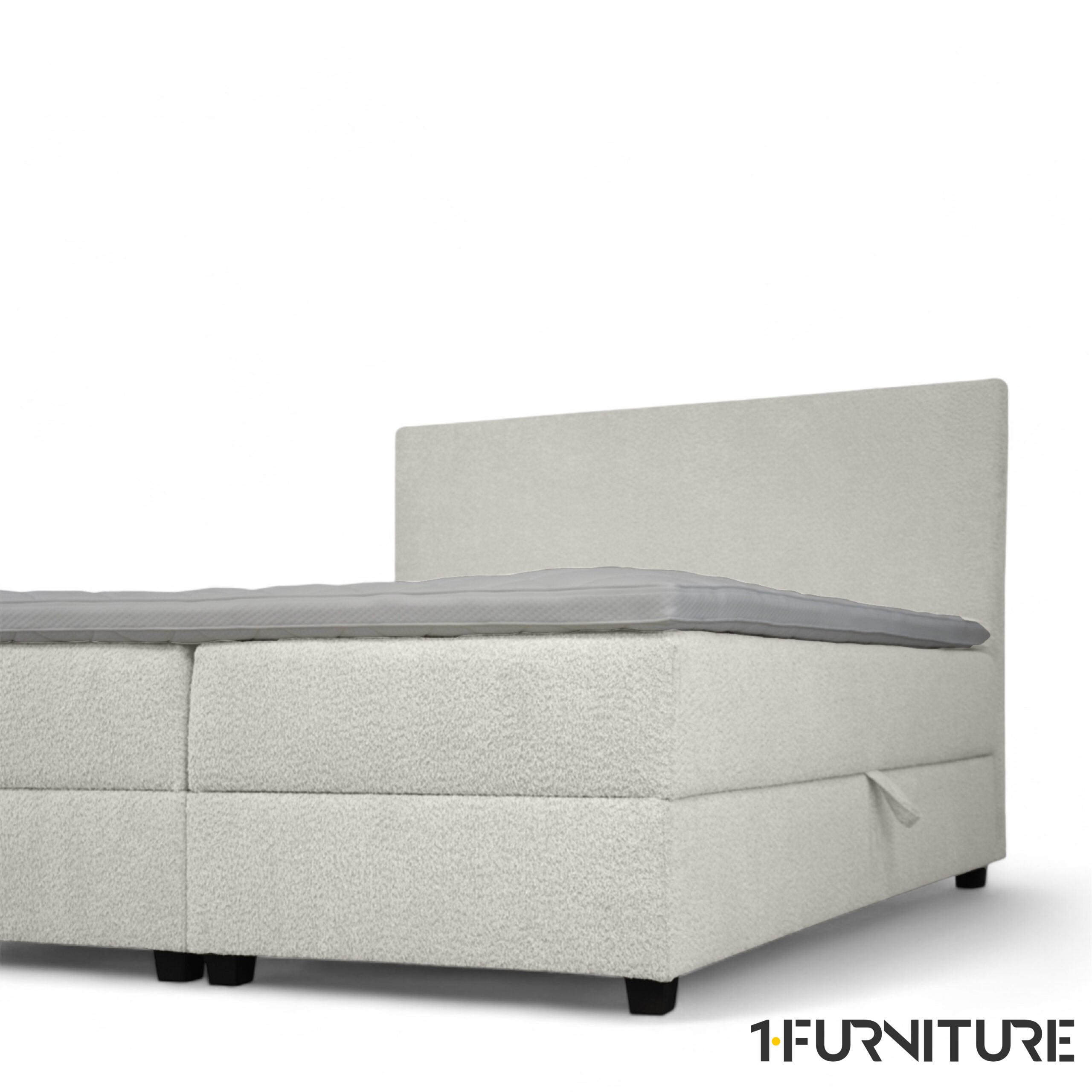 • Kontinentaalvoodi Sanna Ivory on kaetud elegantse ja hubase boucle-tüüpi kangaga “Anthology”, mis on tuntud oma luksusliku tekstuuri ja vastupidavuse poolest. See kangas lisab voodile pehmuse ja sooja atmosfääri, tehes sellest täiusliku valiku igasse magamistuppa.