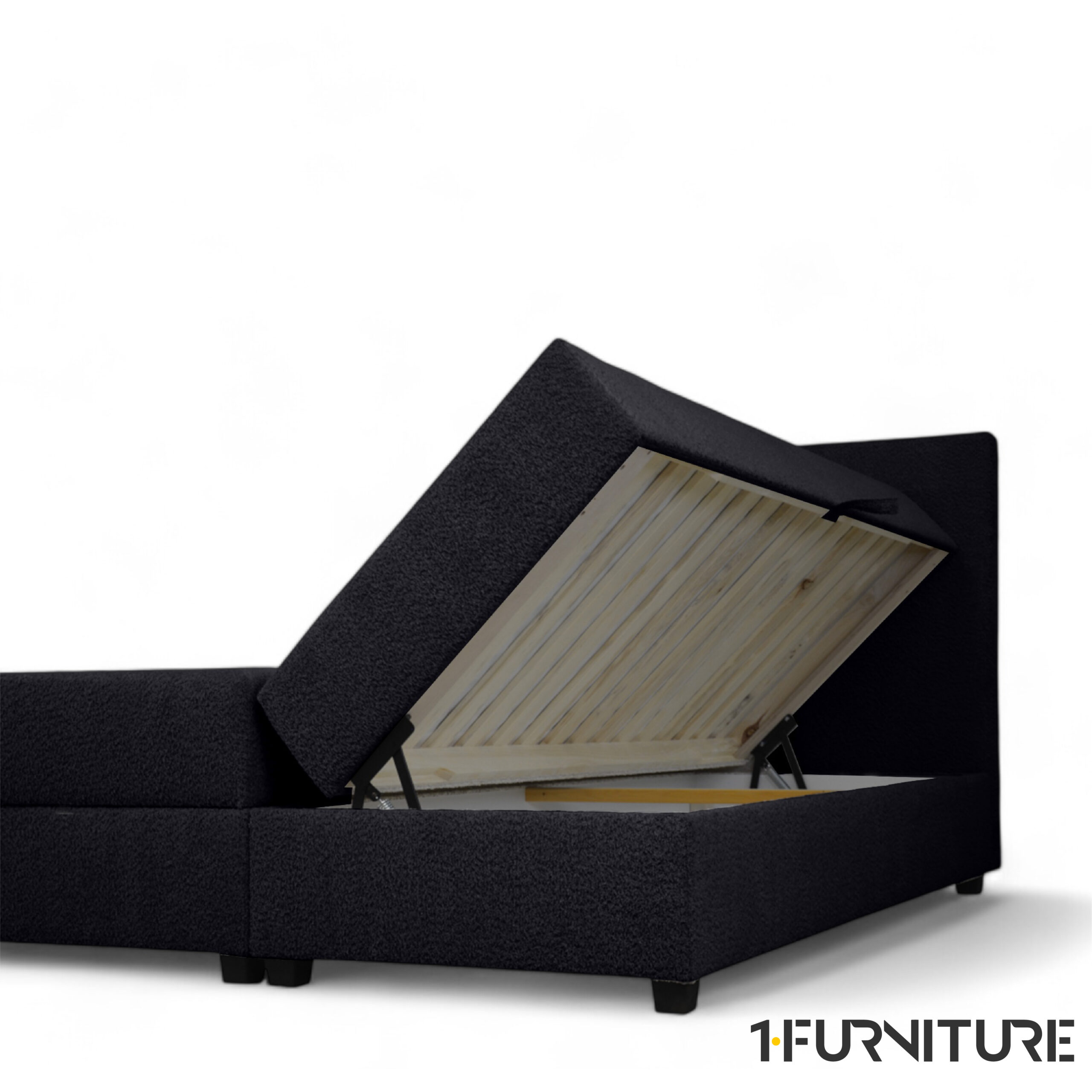 • Kontinentaalvoodi Sanna Must on kaetud elegantse ja hubase boucle-tüüpi kangaga “Anthology”, mis on tuntud oma luksusliku tekstuuri ja vastupidavuse poolest. See kangas lisab voodile pehmuse ja sooja atmosfääri, tehes sellest täiusliku valiku igasse magamistuppa.