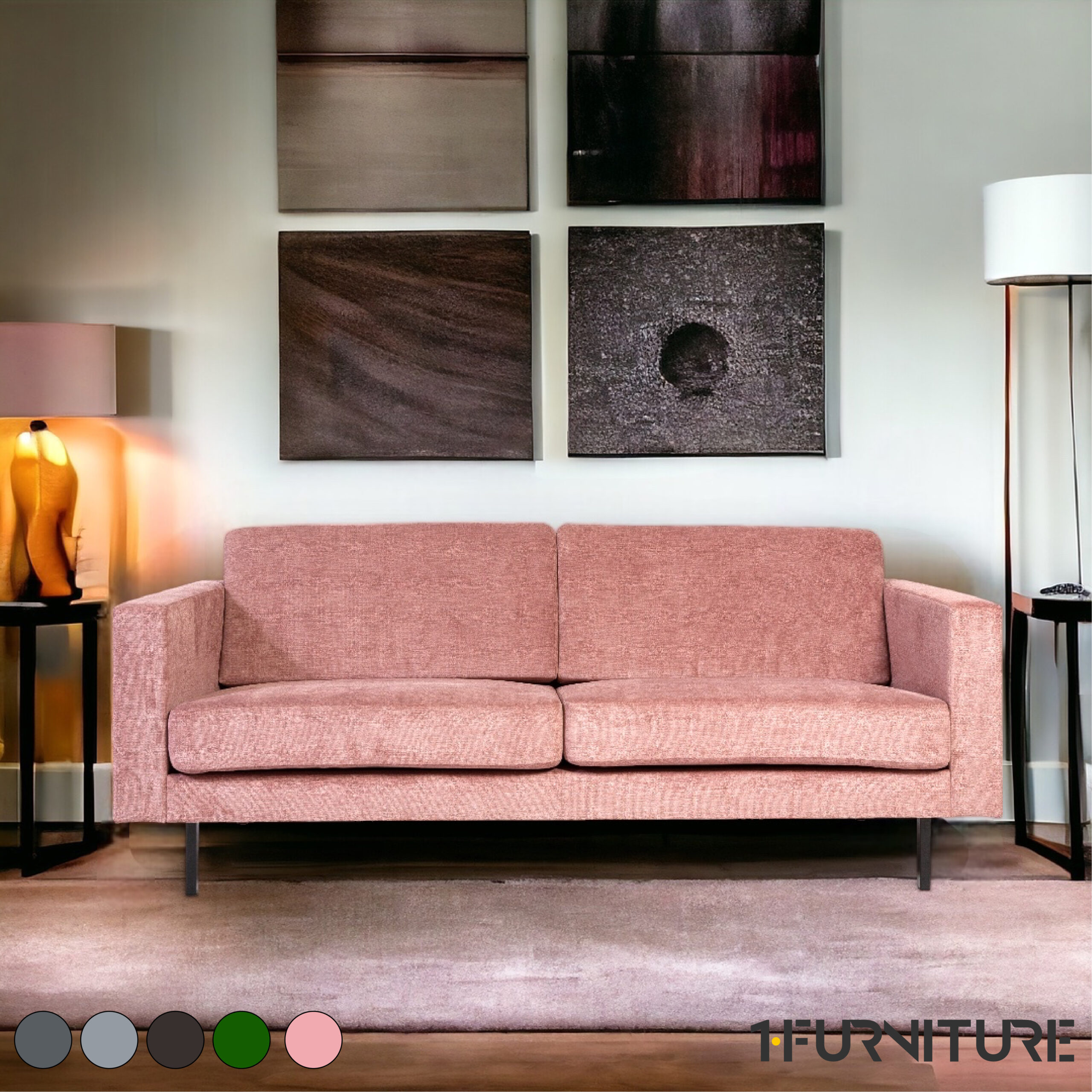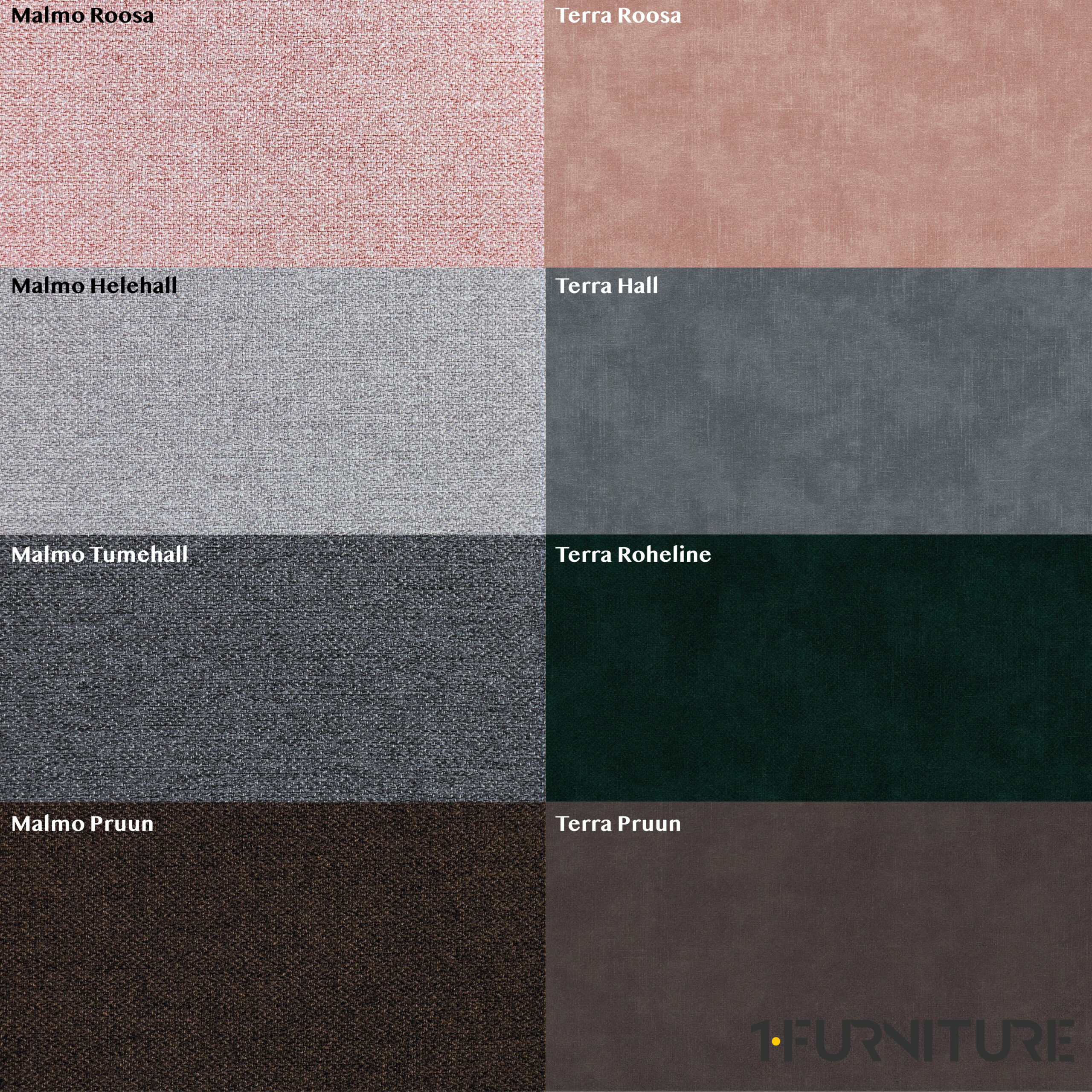 - Diivani istumise osa ja käetugede sisemiste külgede katteks on kangas