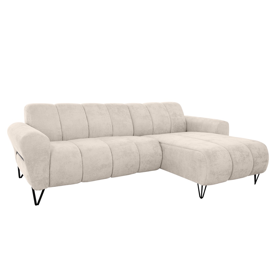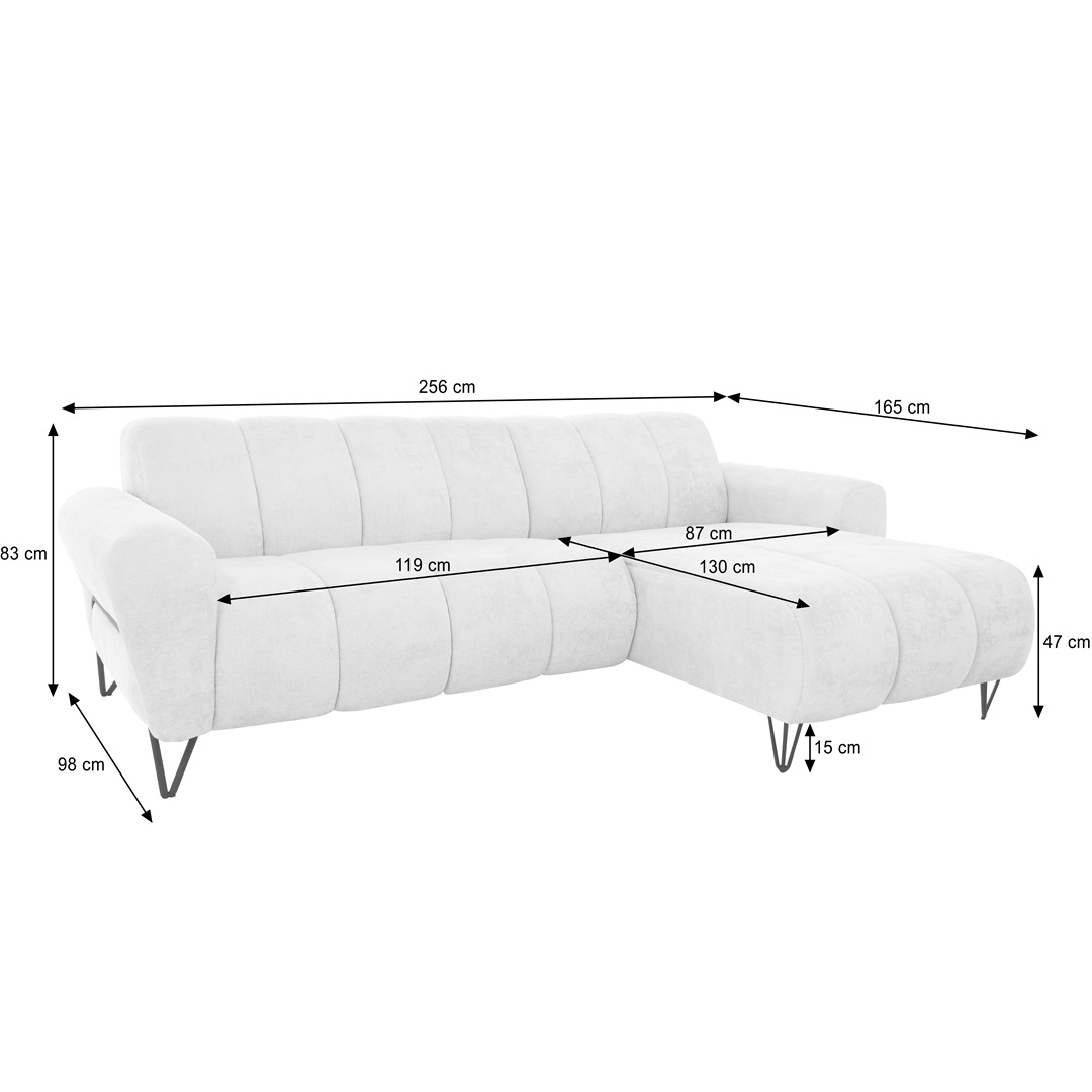 Kompaktne ja stiilne nurgadiivan, millel on dekoratiivne õmblus ja metallist jalad, annab igasse ruumi ajatu ja modernse ilme. See diivan on ideaalne valik, et lisada ruumi luksus ja mugavus ilma ülemäärase ruumikasutuseta.