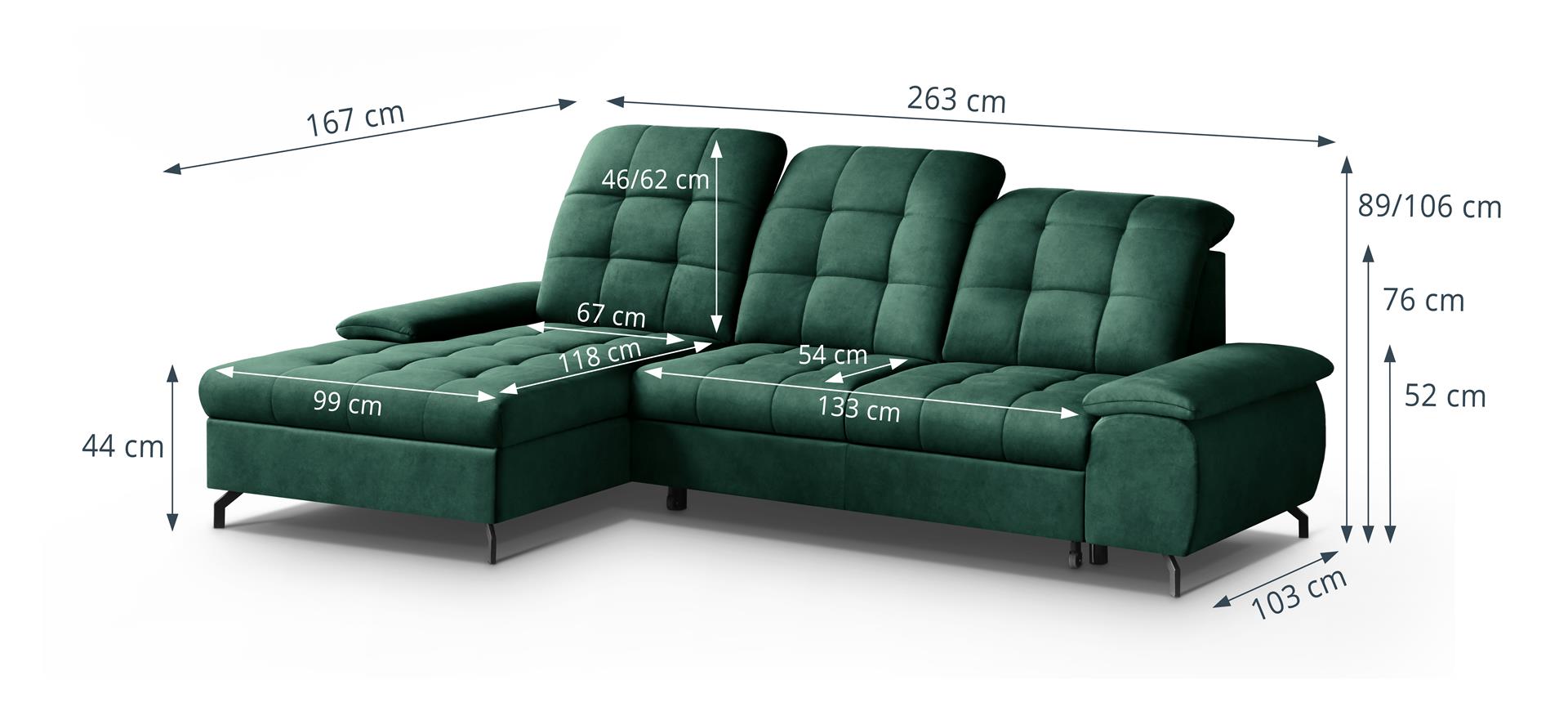 Kogumõõdud: 263 × 167 × 89/106 cm