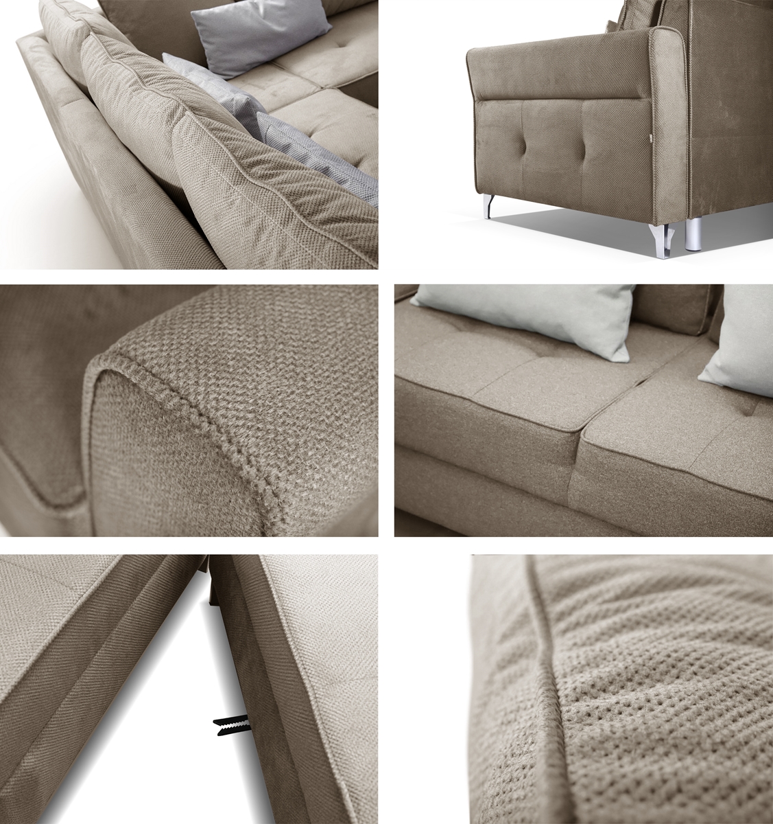 Brodvei L on nurgadiivanvoodi, mis ühendab kõrge mugavuse, praktilised funktsioonid ja elegantse disaini. Tänu kvaliteetsetele materjalidele, hoolikalt läbimõeldud konstruktsioonile ja pehmetele vormidele on see ideaalne valik igasse kaasaegsesse elutuppa.