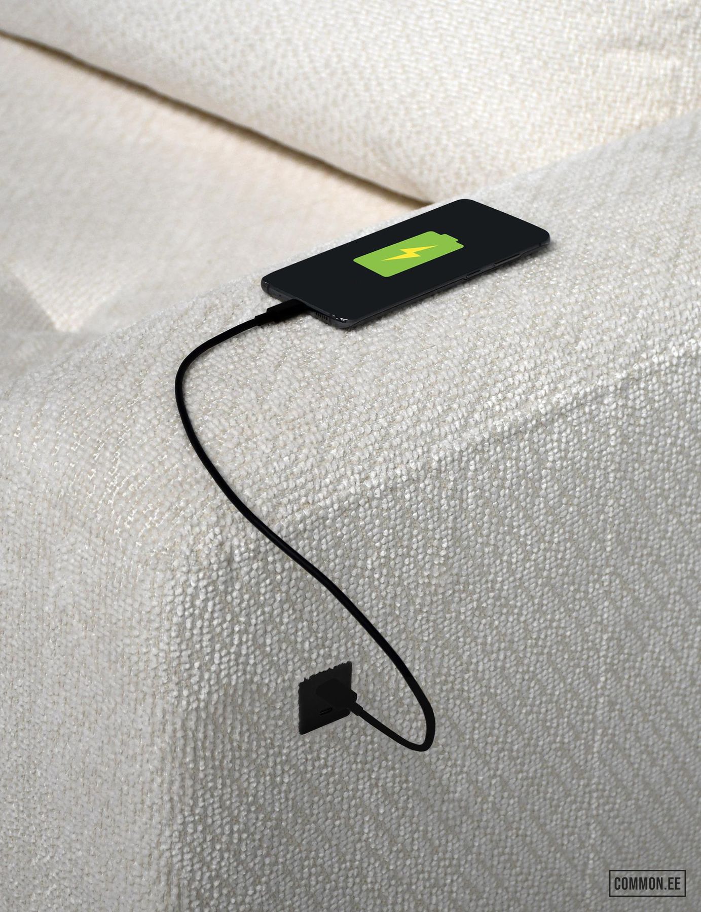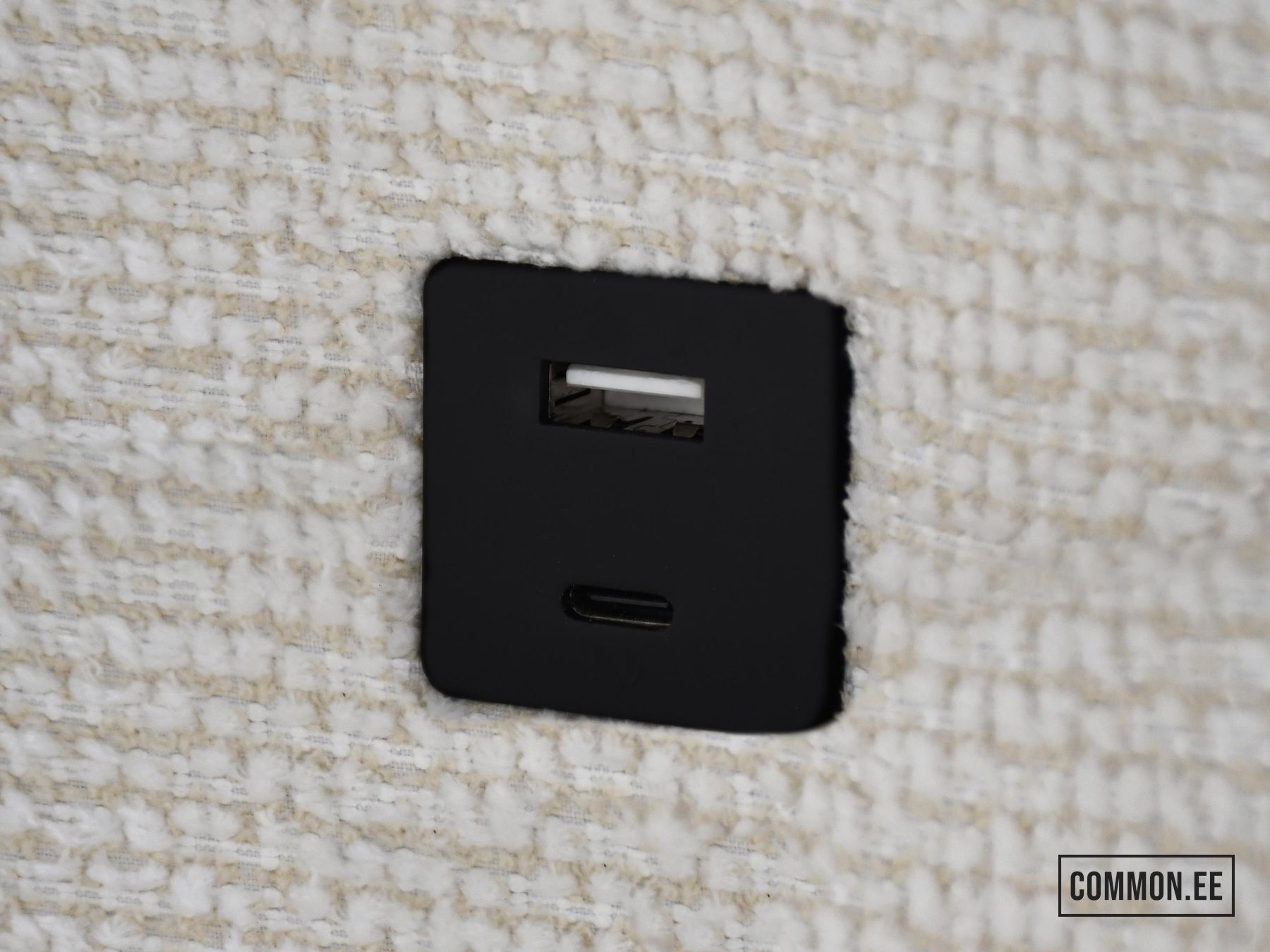 USB-pesa küljeosas – modernne mugavus nutiseadmete laadimiseks.