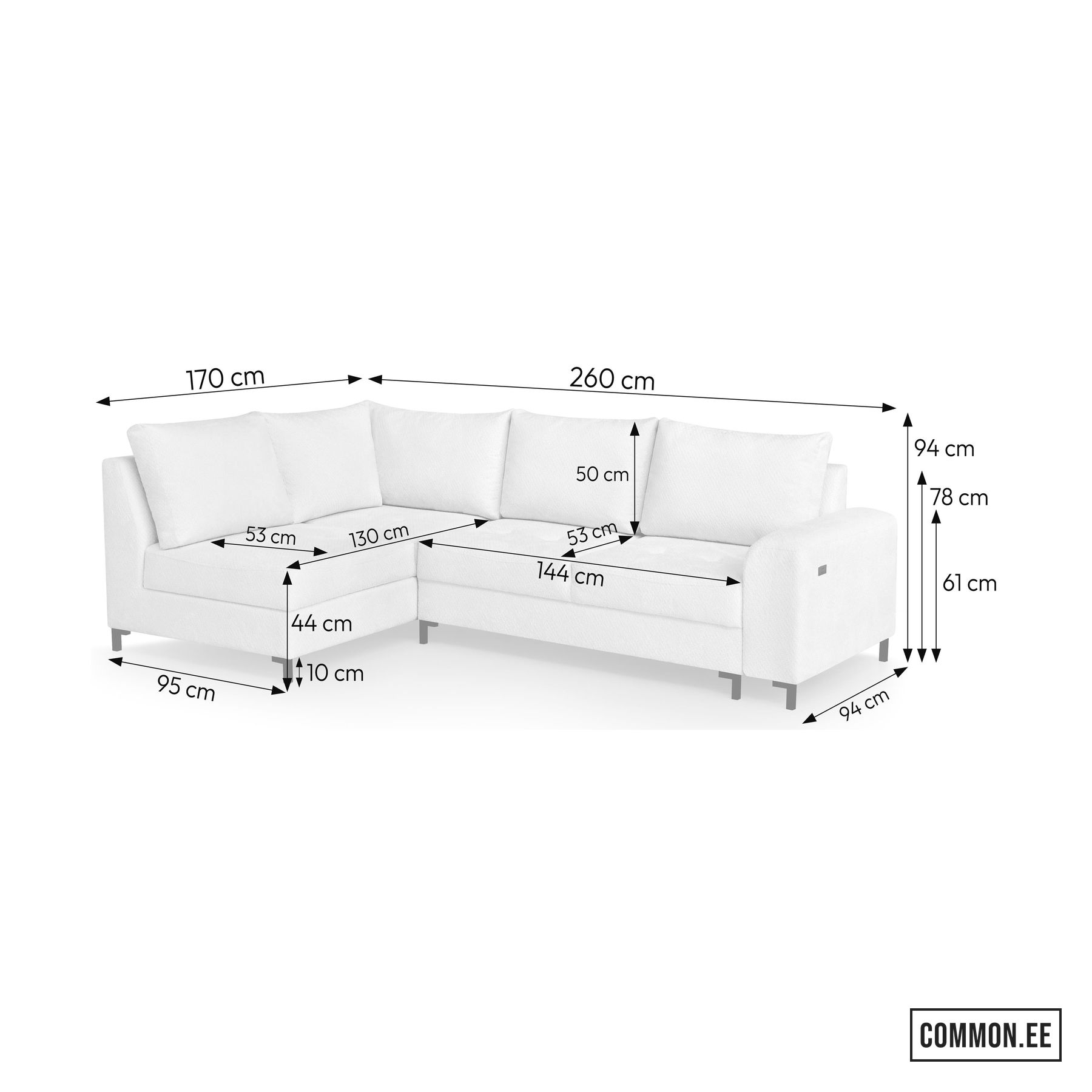 Kogumõõdud: 260 × 170 cm + 78 cm puhvet × 94 cm