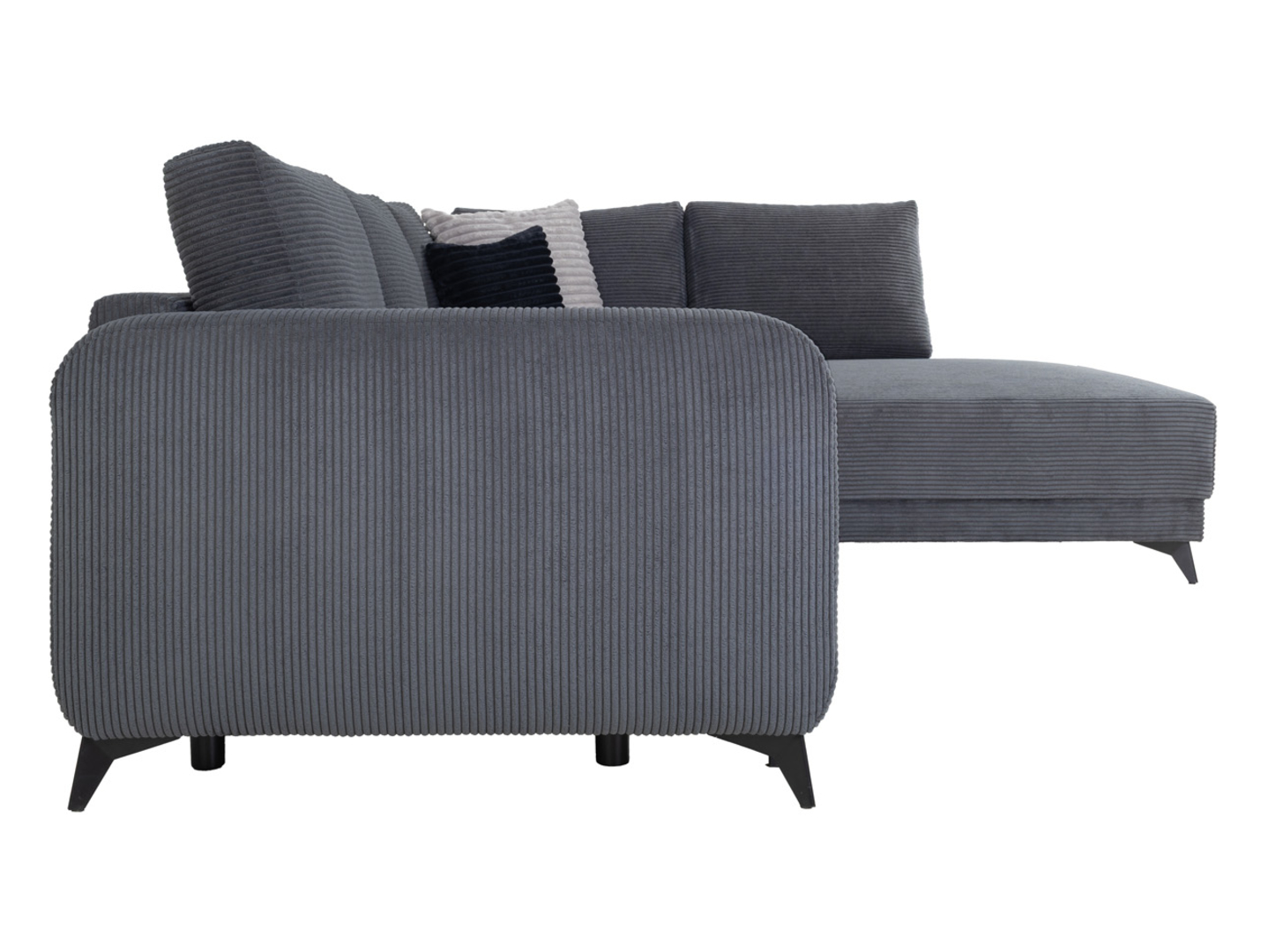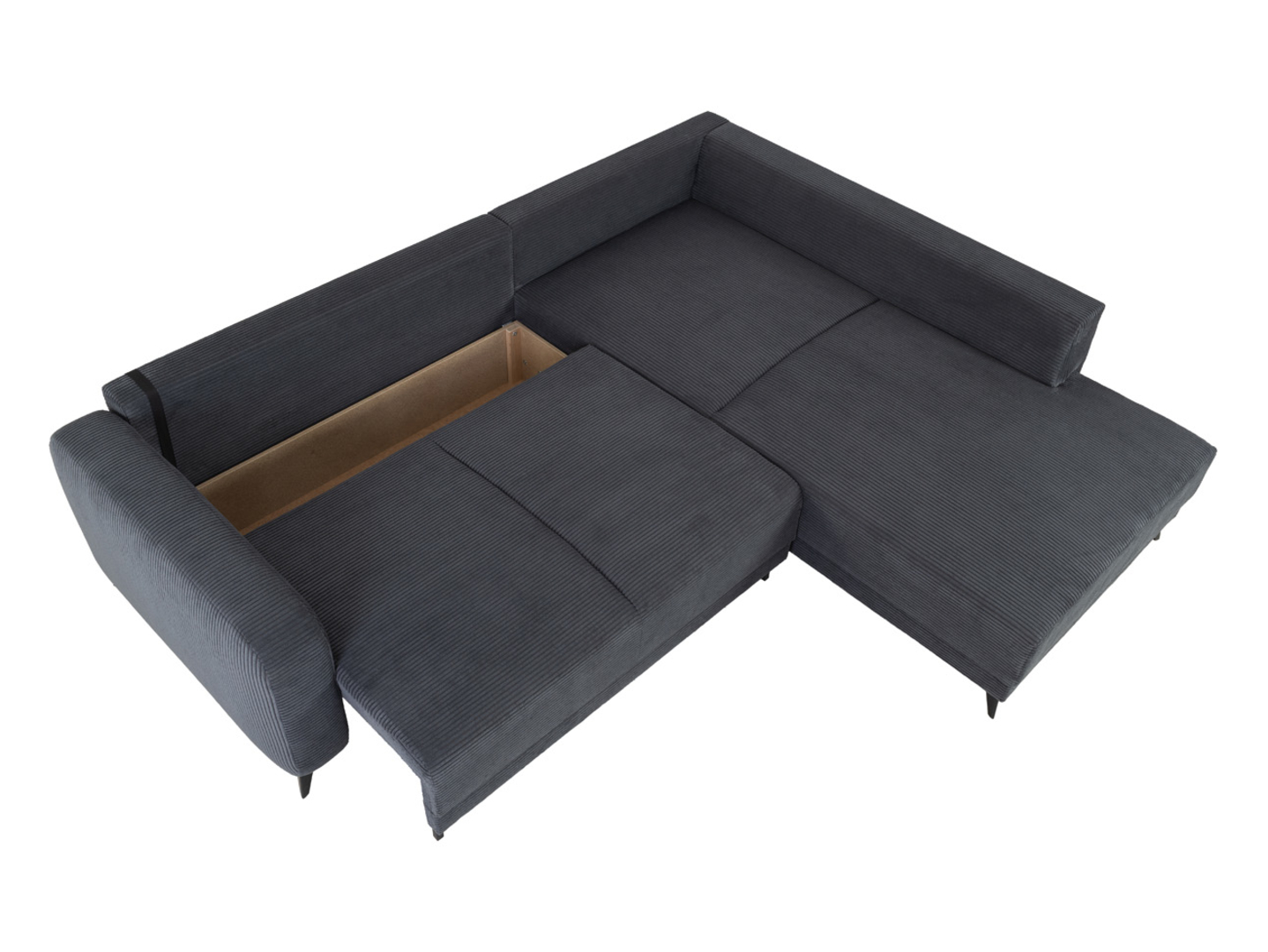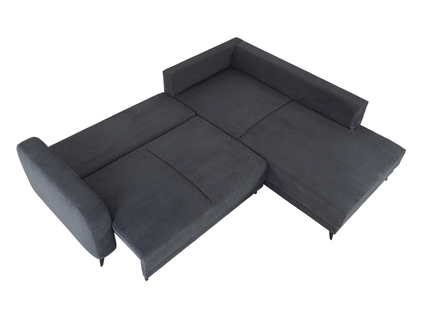 • Istumis- ja magamisosa on kaetud tumeda halli sametise tekstuuriga mööblikangaga, mis on meeldiv puudutusele ja lihtne hooldada.