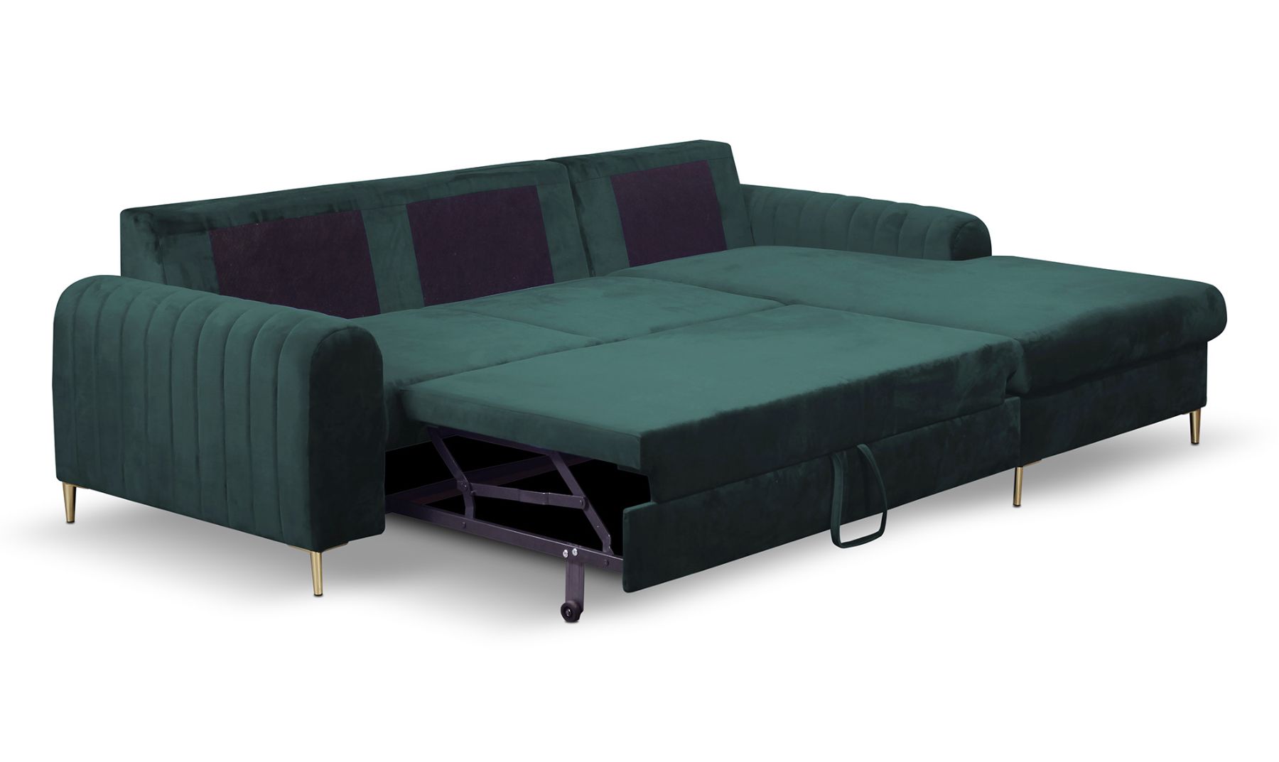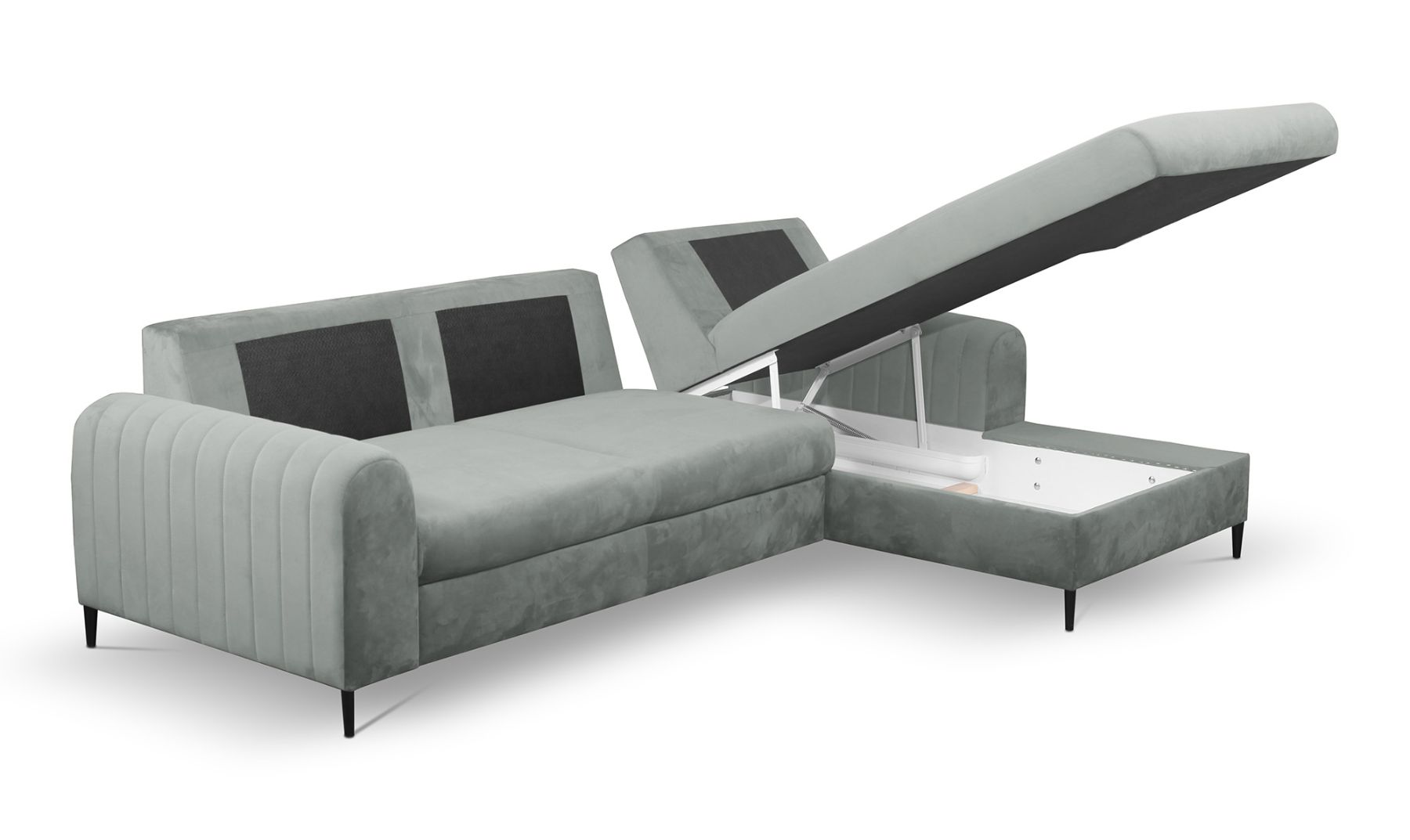 Monako nurgadiivanvoodi on varustatud lihtsalt kasutatava lahtikäimismehhanismiga, mille abil saab diivani kiiresti muuta suureks ja mugavaks magamispinnaks. Integreeritud panipaik pakub praktilist hoiuruumi voodipesu ja muude esemete jaoks.