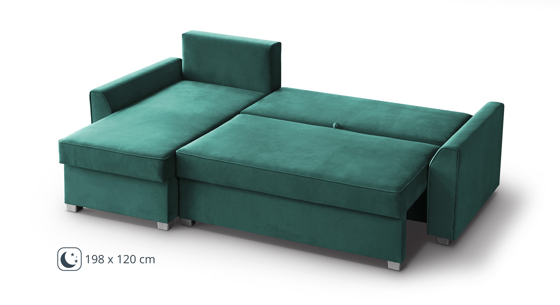 Magamisfunktsioon – praktiline avamismehhanism võimaldab diivani kiiresti muuta avaraks voodiks, mille magamispind on 198 × 120 cm.