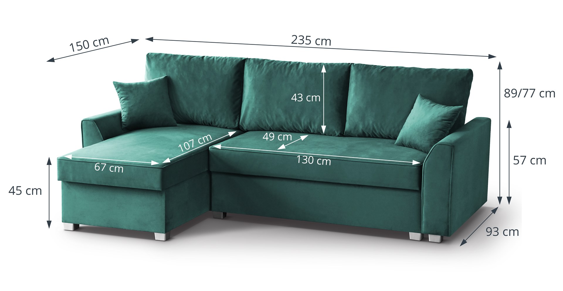 Kogumõõdud: 235 × 150 × 89 cm