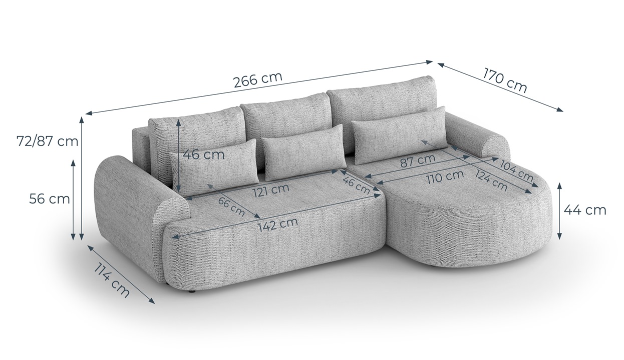 Oliv on nurgadiivanvoodi, mis ühendab kauni välimuse, nutikad funktsioonid ja igapäevase mugavuse. Selle kaasaegne vorm, praktiline panipaik ja lihtne lahtikäimise mehhanism teevad Olivist mööblieseme, mis sobib nii pere igapäevaellu kui ka külaliste võõrustamiseks. Päeval elegantne ja ruumikas diivan, öösel mugav voodi – Oliv on alati valmis sinu vajadusi täitma.