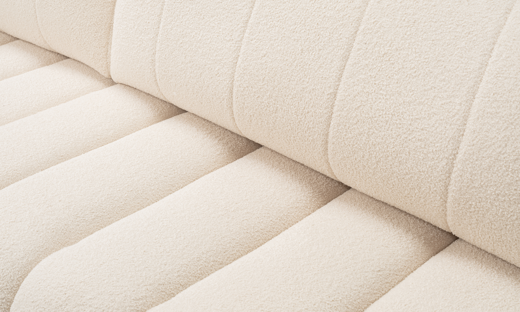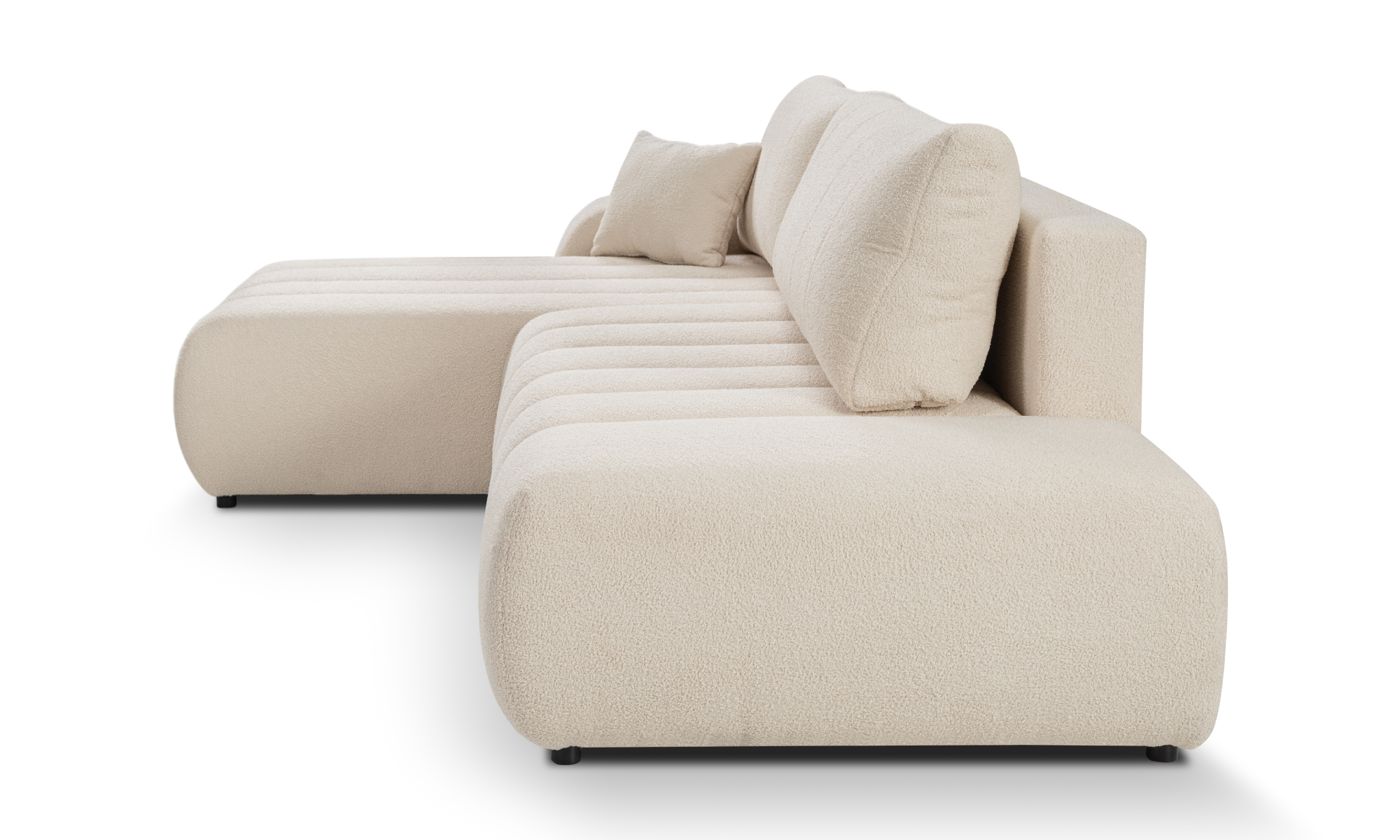 Täielikult polsterdatud tagakülg võimaldab diivanit paigutada ka ruumi keskele, säilitades esteetilise välimuse igast küljest.