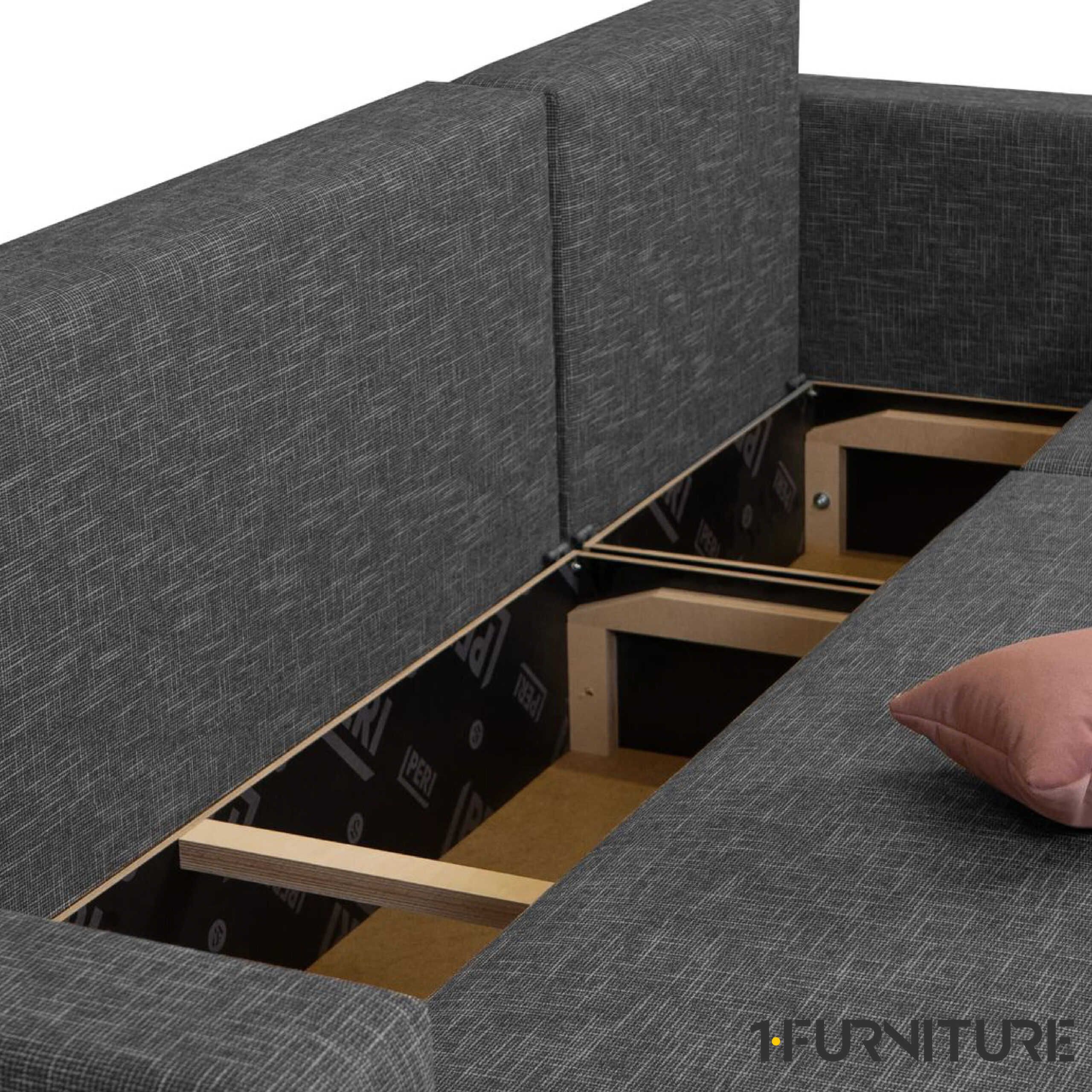 - Diivani alla peidetud mahukas kahe sahtliga pesukast pakub piisavalt hoiuruumi, hoides teie kodu korras ja organiseerituna.