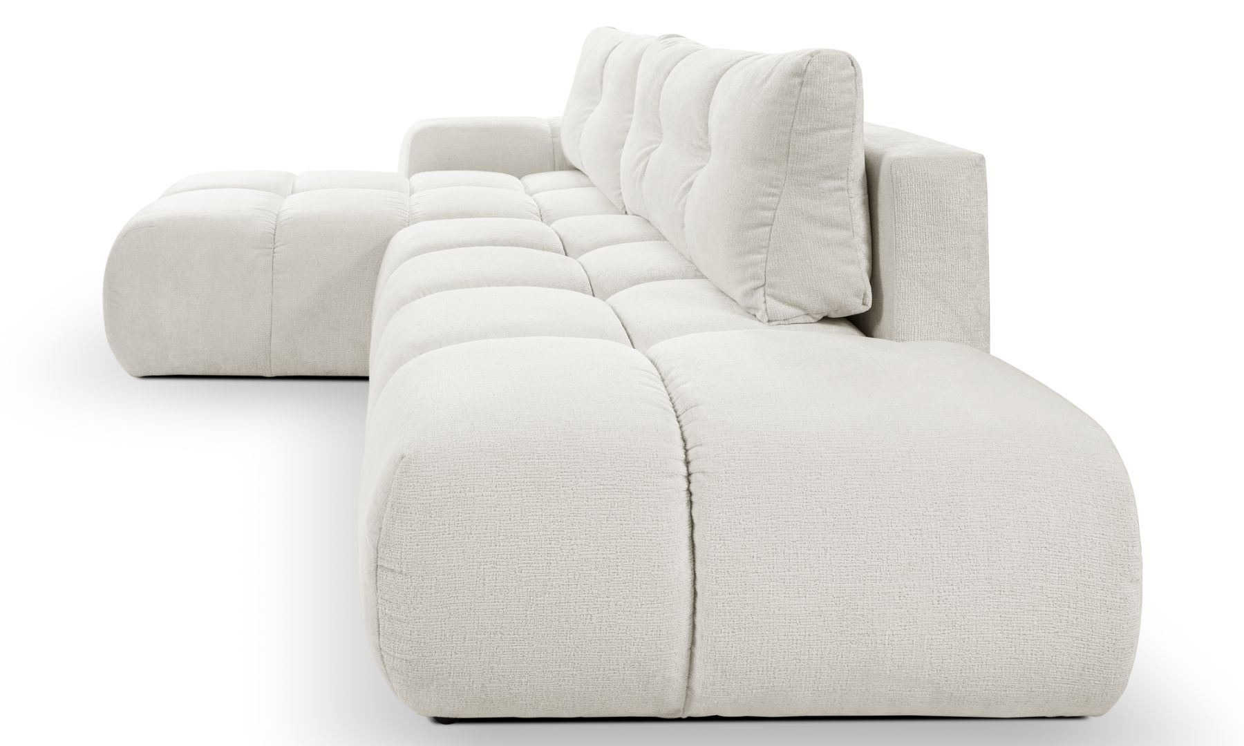 Täielikult polsterdatud tagakülg võimaldab diivanit paigutada ka ruumi keskele, säilitades esteetilise välimuse igast küljest.