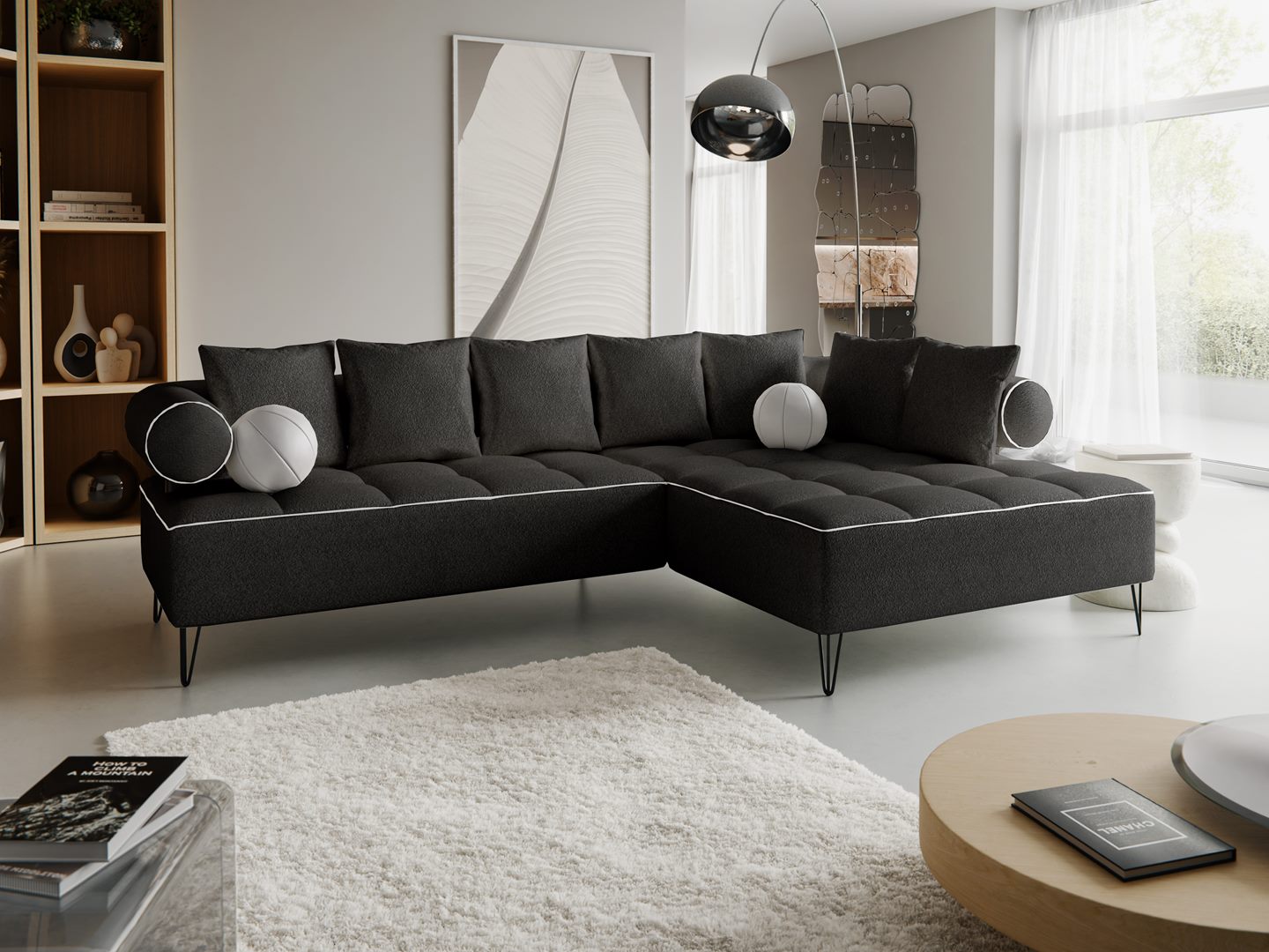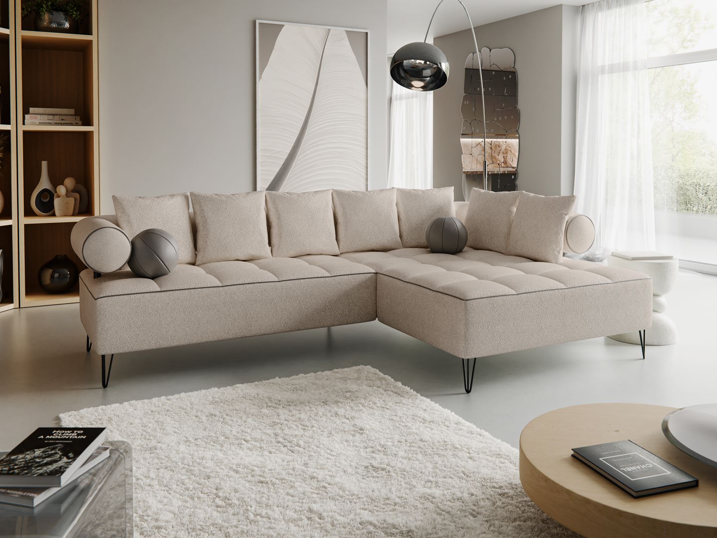 L-kujuline vorm – sobib ideaalselt keskmise või suure elutoa keskpunktiks, pakkudes piisavalt istumisruumi perele ja külalistele.