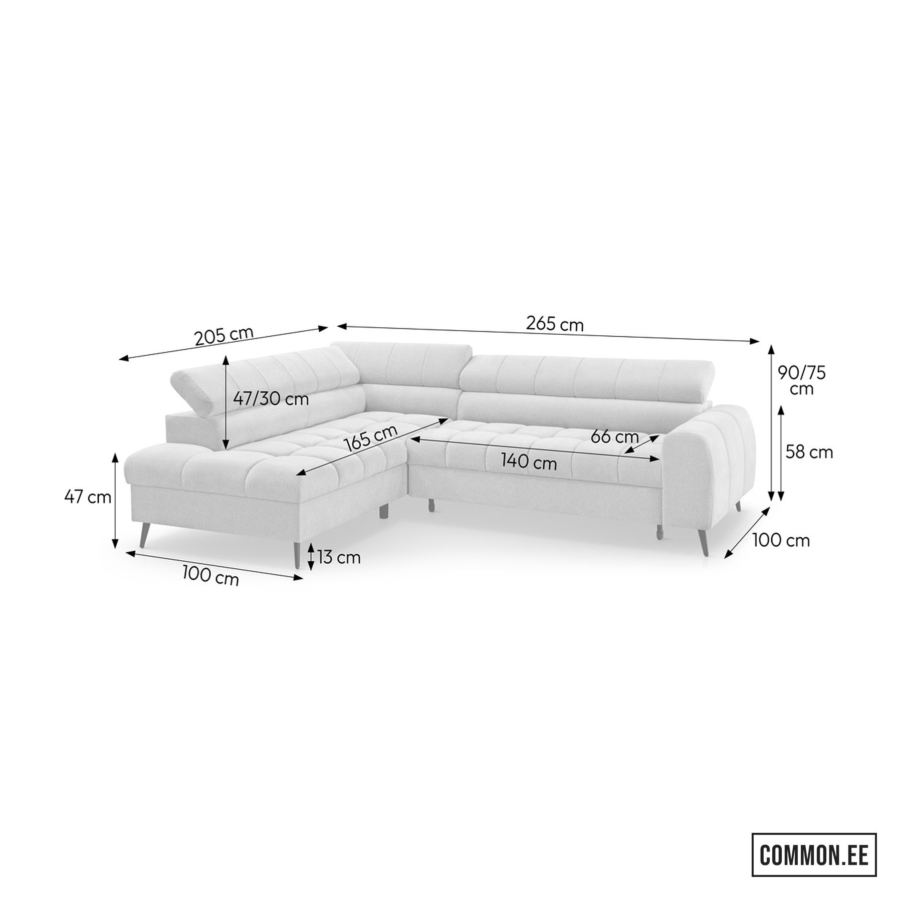 • Kogumõõdud: 265 × 205 × 90/75 cm