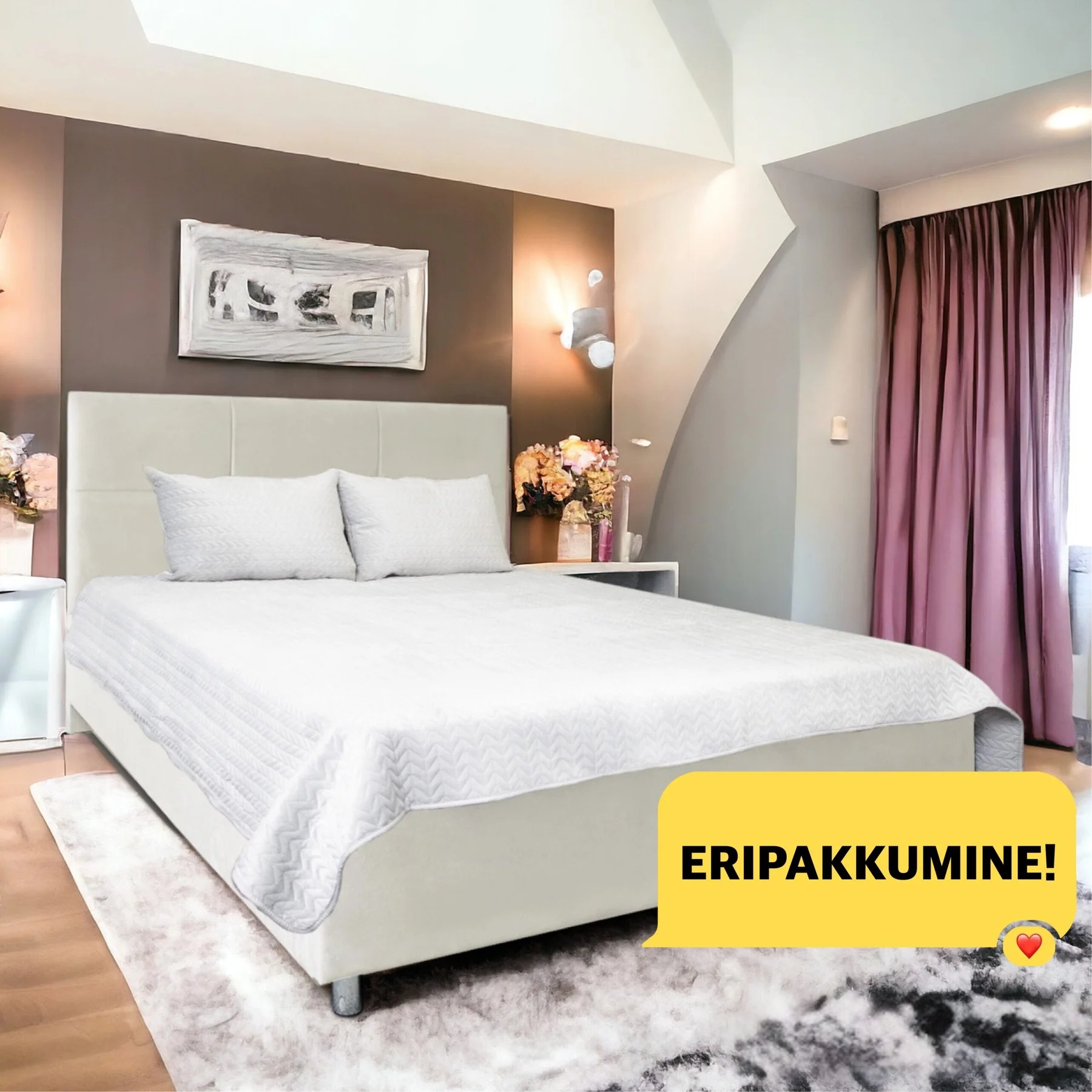 - Voodi elegantset välimust täiendab dekoratiivne peatugi, mis lisab sellele isikupära ja sobib ideaalselt lugemiseks või telerivaatamiseks enne magamaminekut.