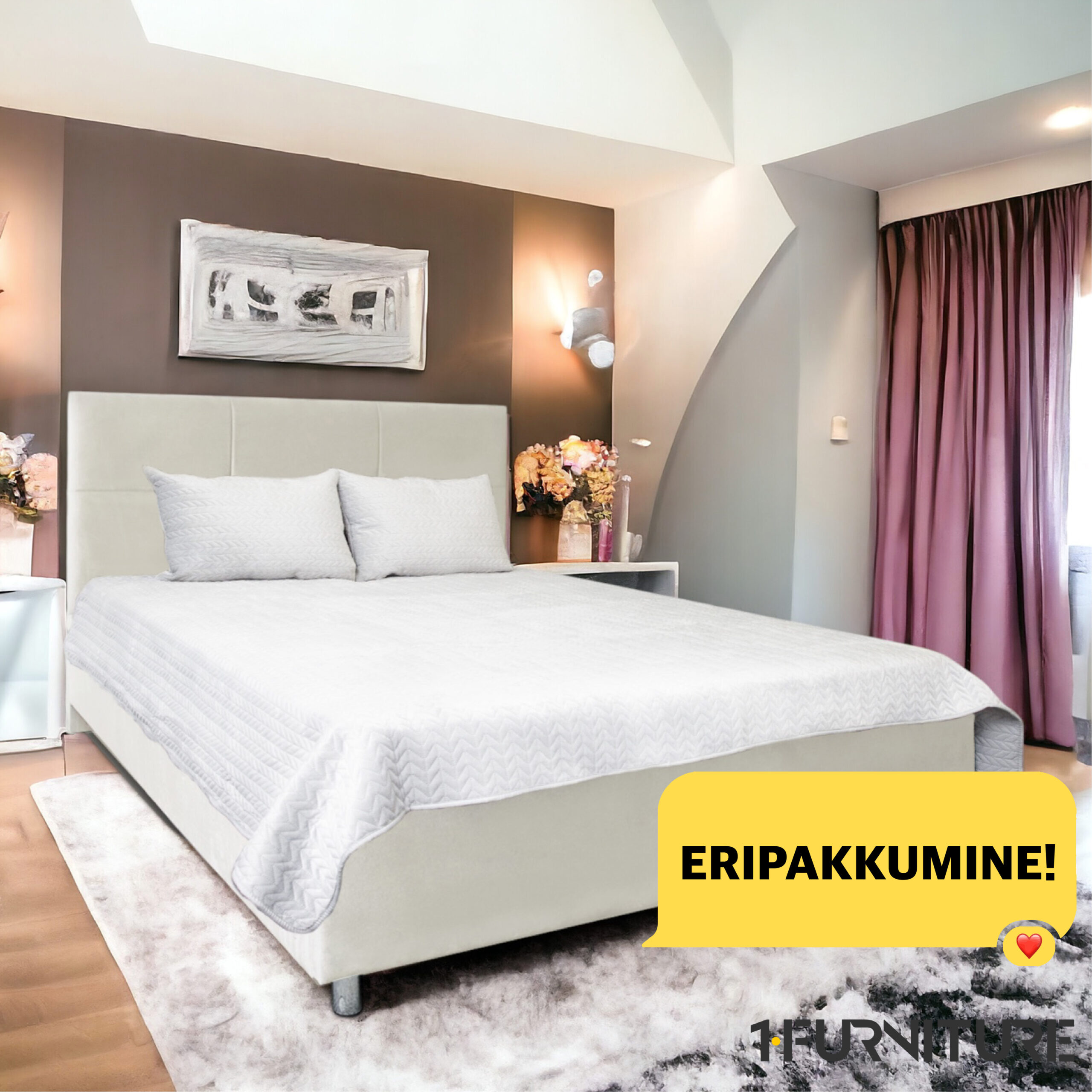 - Üles tõstetav voodiraam on varustatud gaasiamortidega, mis muudavad suure madratsi ülestõstmise lihtsaks ja vaevatuks.