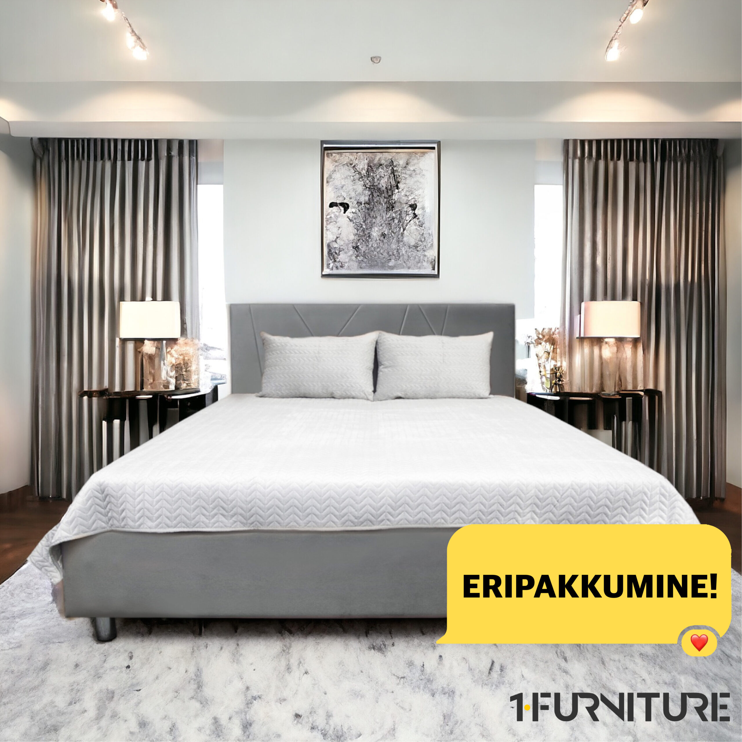 • Voodi on valmistatud vastupidavast puidust konstruktsioonist ning kaetud kvaliteetse ja luksusliku sametkangaga, mis lisab sellele pehmust ja visuaalset soojust.
