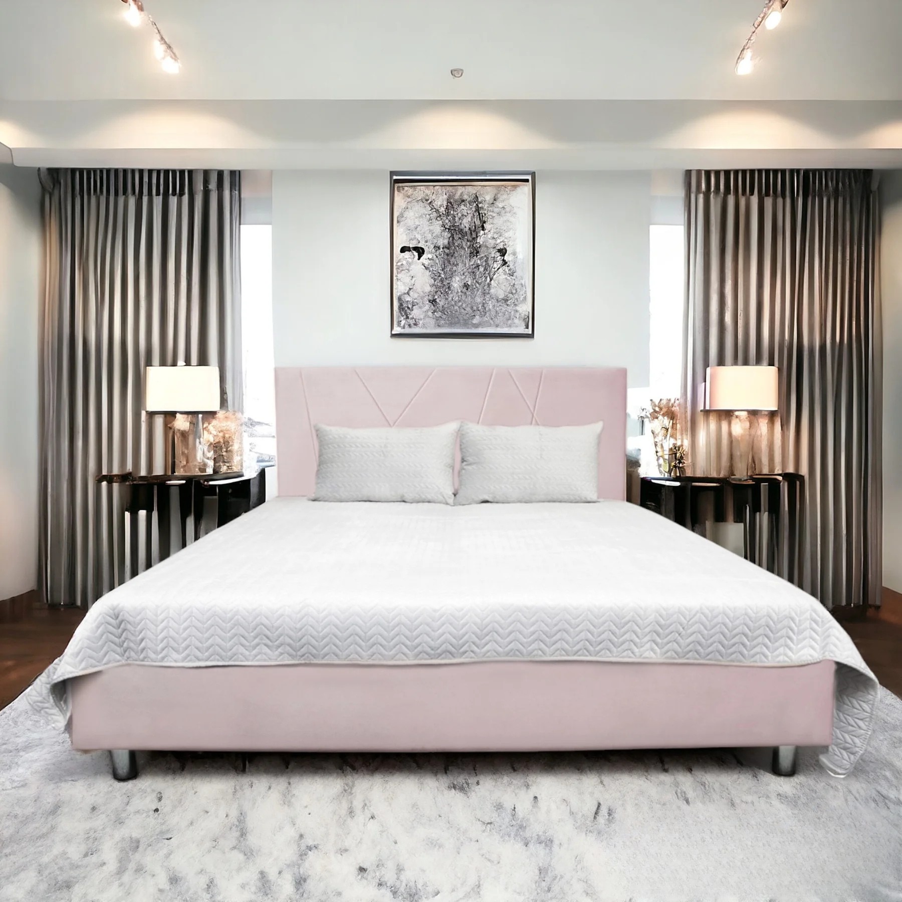 - Voodi on valmistatud vastupidavast puidust konstruktsioonist ning kaetud kvaliteetse ja luksusliku sametkangaga, mis lisab sellele pehmust ja visuaalset soojust.