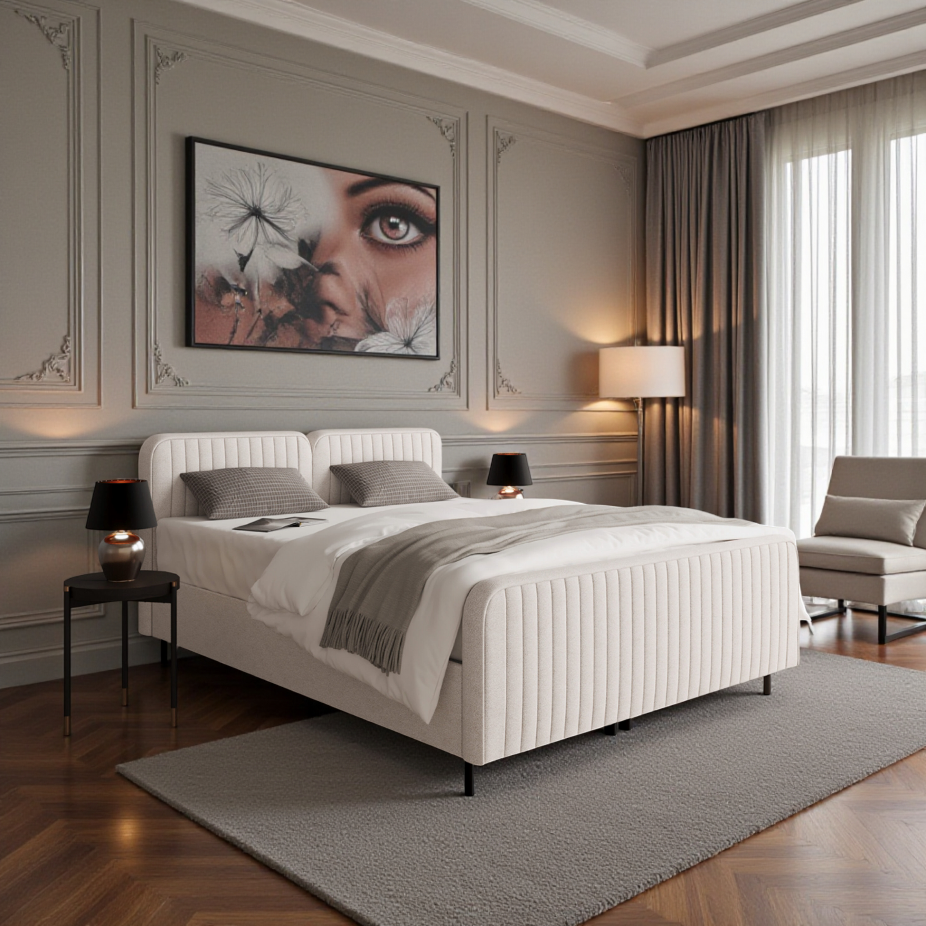 Lama on voodi, mis ühendab klassikalise elegantsi ja praktilise funktsionaalsuse. Kauni vertikaalse tepitud peatsi ja jalutsi, peidetud panipaiga ning mugava madratsikomplektiga loob Lama magamistuppa luksusliku, ent koduse meeleolu. See on voodi, mis pakub samaaegselt visuaalset ilu ja igapäevast mugavust.