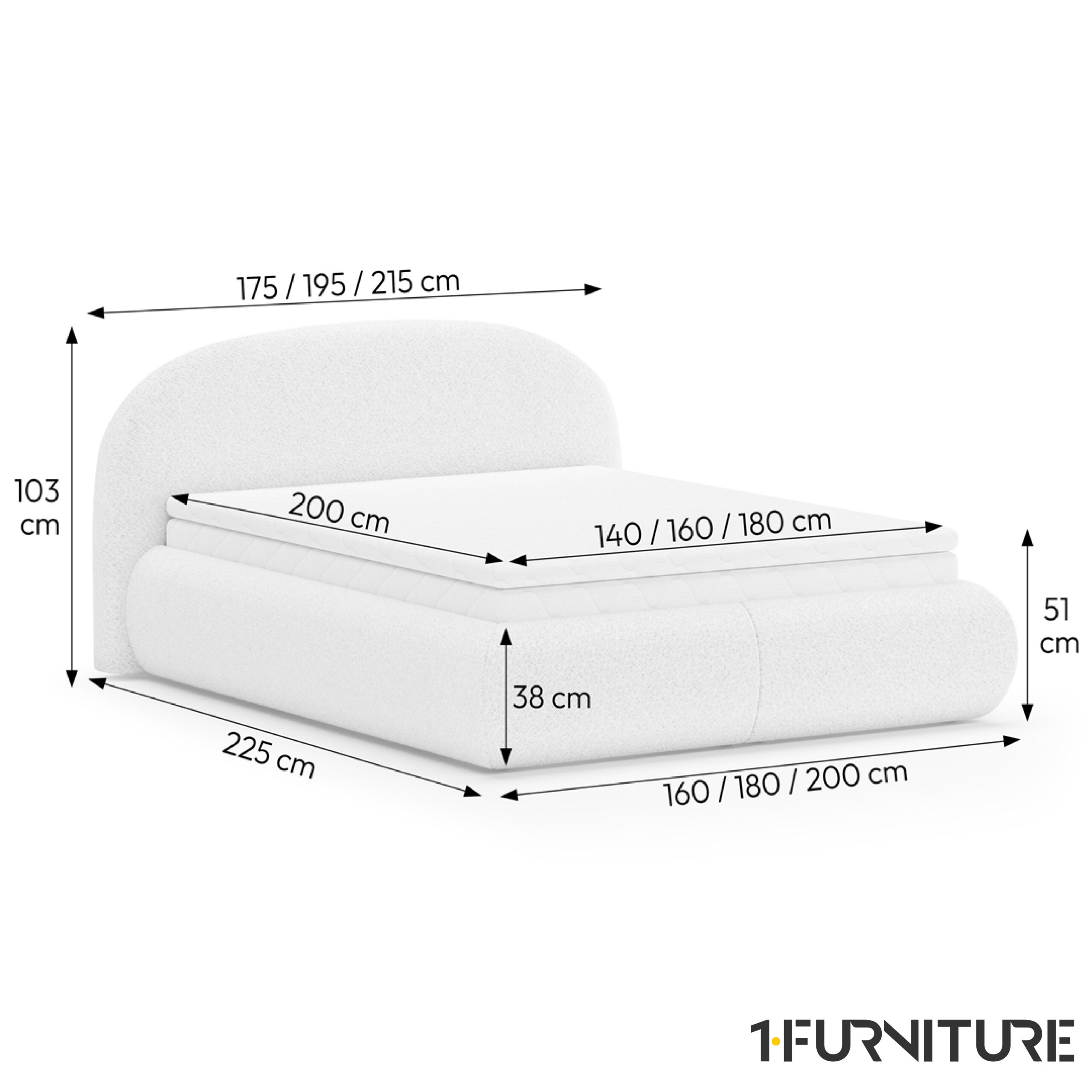 Kogumõõdud: 175 / 195 / 215 × 225 × 103 cm