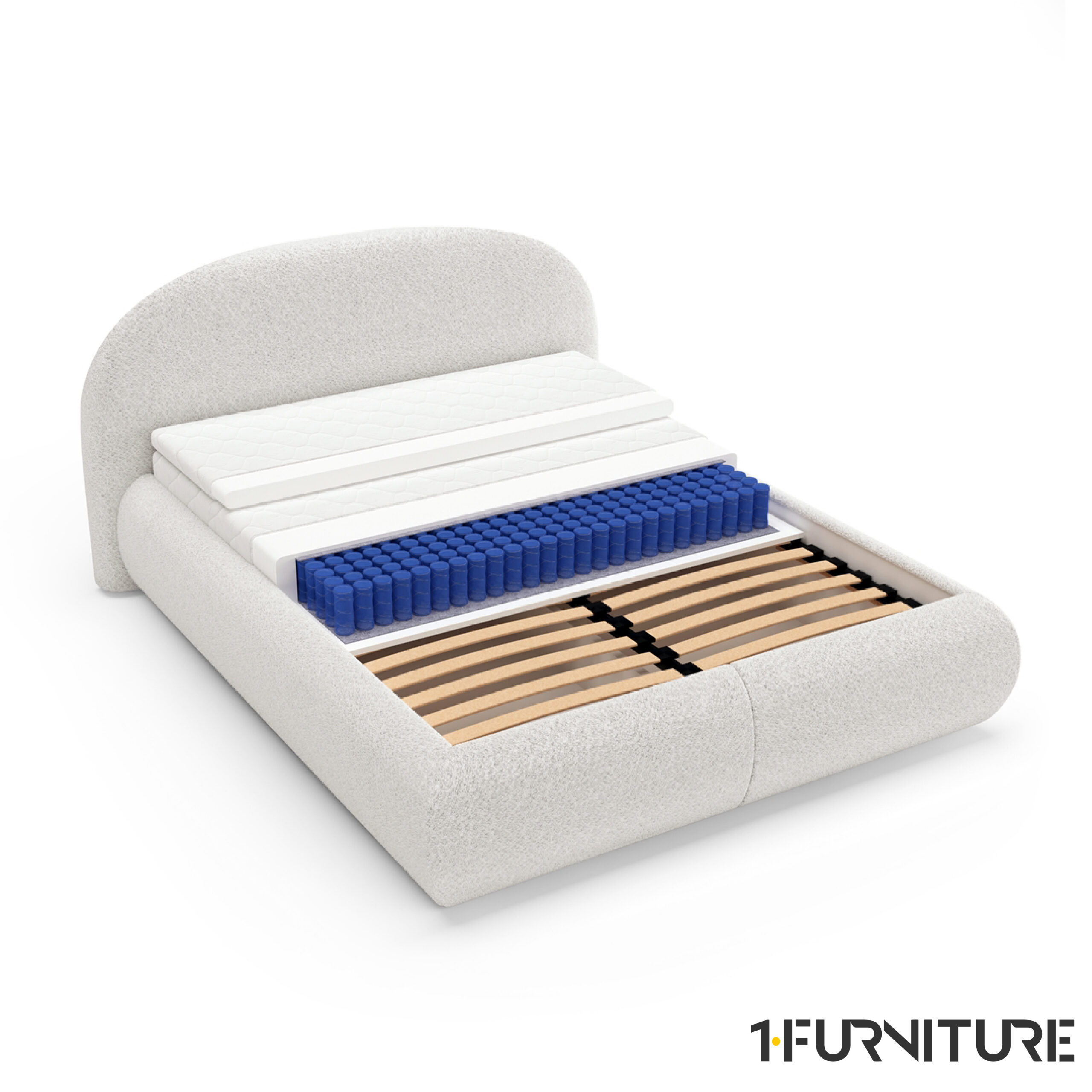 Moee on voodi, mis ühendab ajatu disaini, praktilised lahendused ja kõrge mugavuse. Bouclé-kangas ja kaunilt kumer peats loovad magamistoas hubase atmosfääri, samas kui peidetud panipaik ja kvaliteetne madratsikomplekt muudavad selle ühtaegu kauniks ja praktiliseks valikuks.