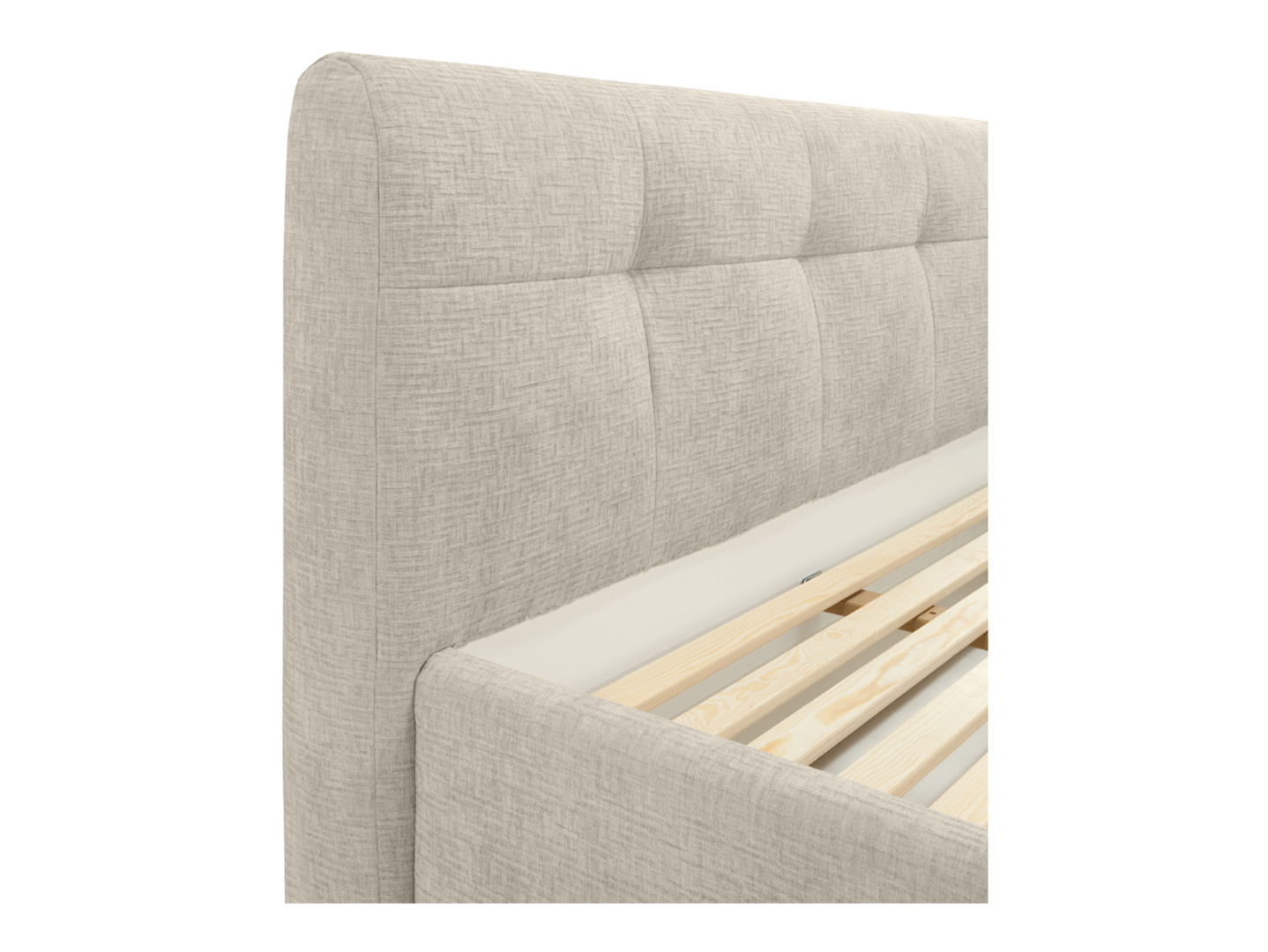 • Nuvia voodi paistab silma oma pehme ja polsterdatud peatsiga, mille õrn tepitud muster pakub mugavat tuge nii lugemisel kui ka puhkamisel.