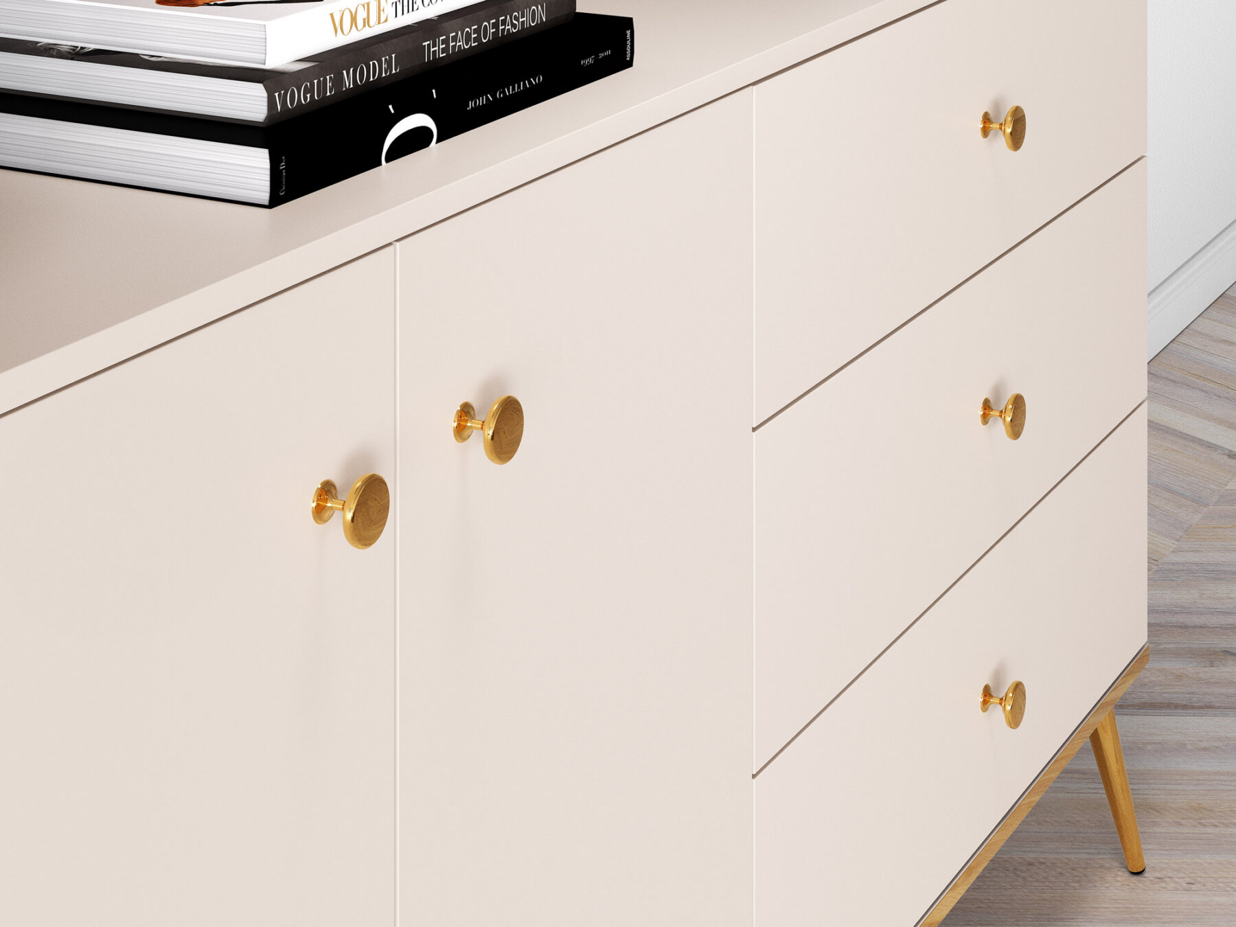 Kummuti keskosas asuvad neli sügavat sahtlit, mis pakuvad piisavalt ruumi dokumentide, laudlinade või muude kodutekstiilide hoiustamiseks.