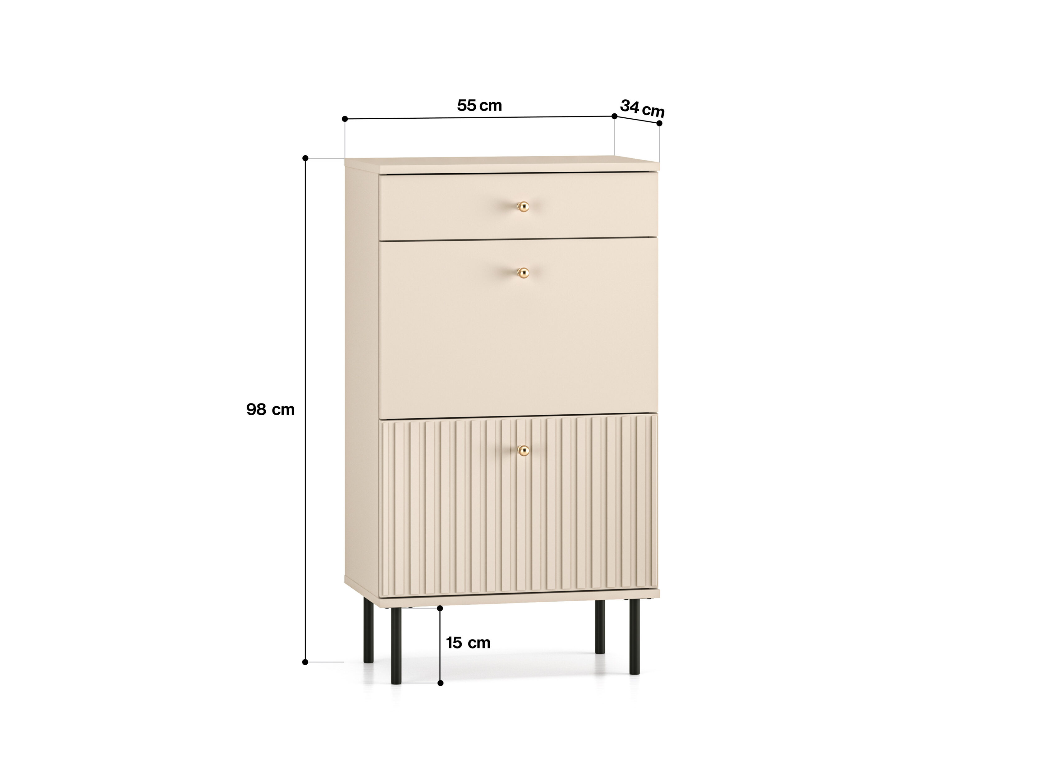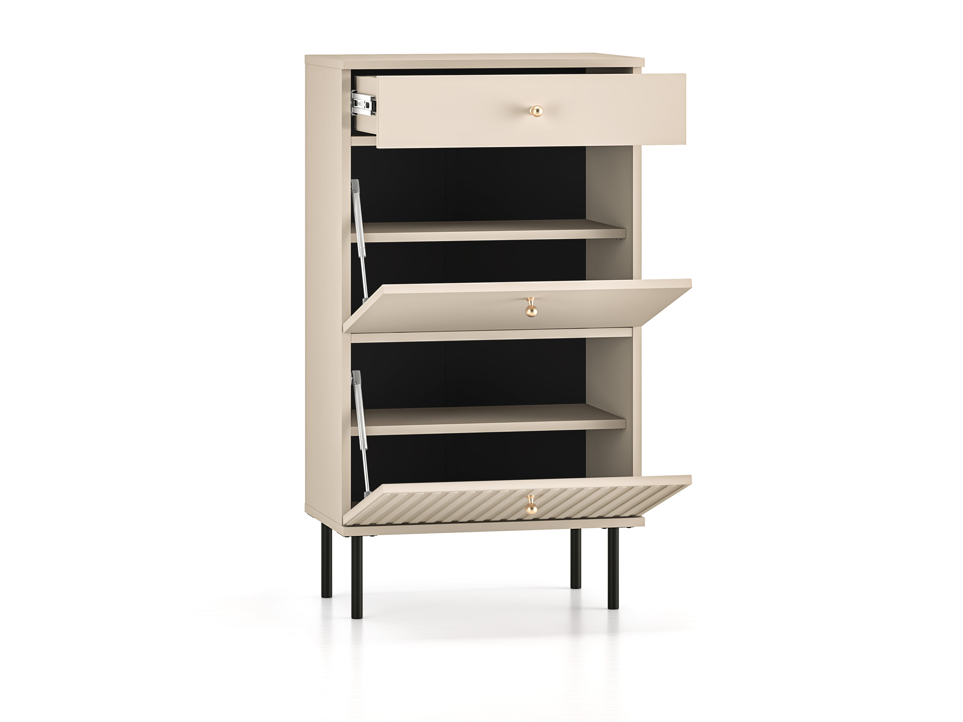 Väike täielikult väljatõmmatav sahtel sobib ideaalselt jalanõude hooldustarvikute või väiksemate rõivaesemete, näiteks sallide ja mütside paigutamiseks.