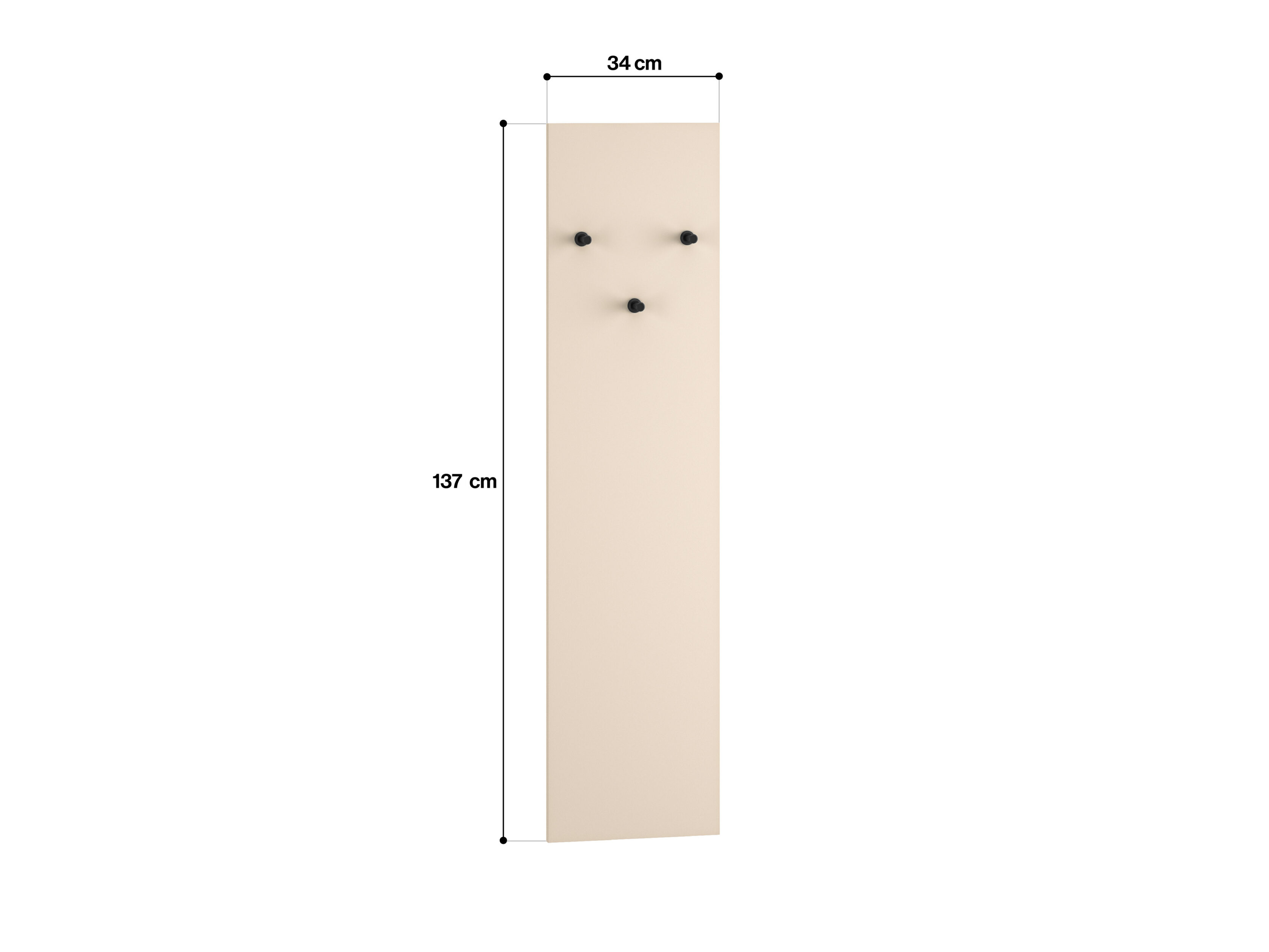 Mudelit täiendavad kolm musta konksu üleriiete riputamiseks, pakkudes mugavat ja kiiret ligipääsu igapäevaselt kasutatavatele esemetele.