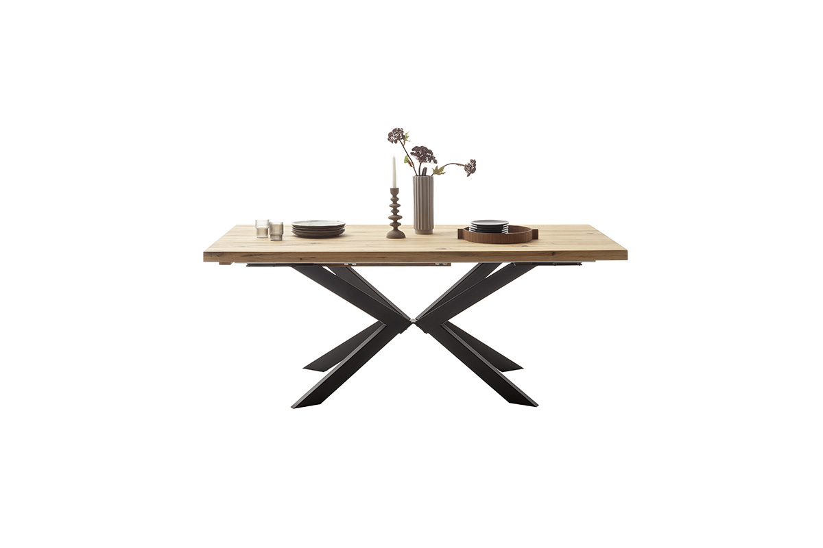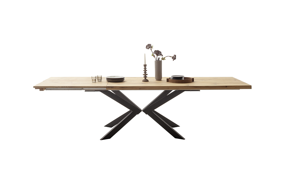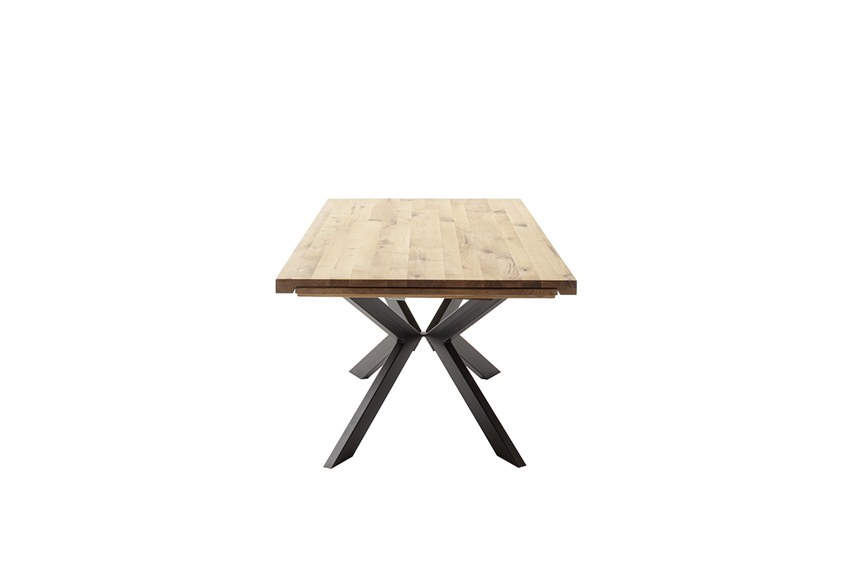 Tugev metallist alus on viimistletud antratsiitvärvi pulberkattega ning selle modernne X-kujuline disain pakub suurepärast stabiilsust ja kaasaegset iseloomu. Laud on varustatud praktilise sünkroonmehhanismiga pikendussüsteemiga, mis võimaldab lauda lihtsalt ja sujuvalt suurendada, pakkudes rohkem ruumi suuremateks koosviibimisteks.