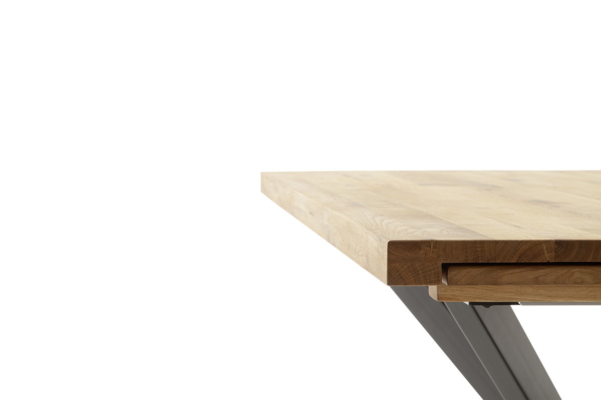 Laua pealisplaat on valmistatud kvaliteetsest õlitatud metsiku tamme täispuidust, mille naturaalne tekstuur ja toon annavad igale lauale ainulaadse välimuse. Tugev ja paks, ca 50 mm plaadikonstruktsioon tagab vastupidavuse ning luksusliku mulje.