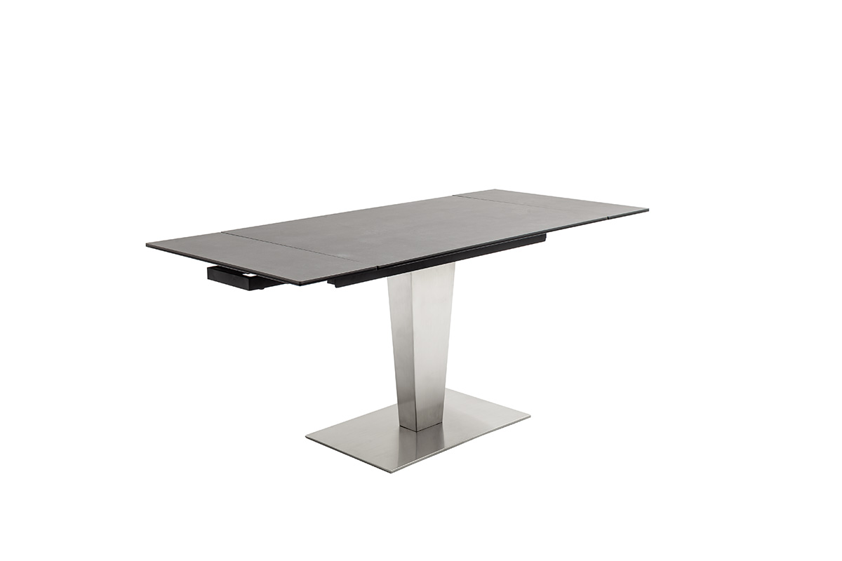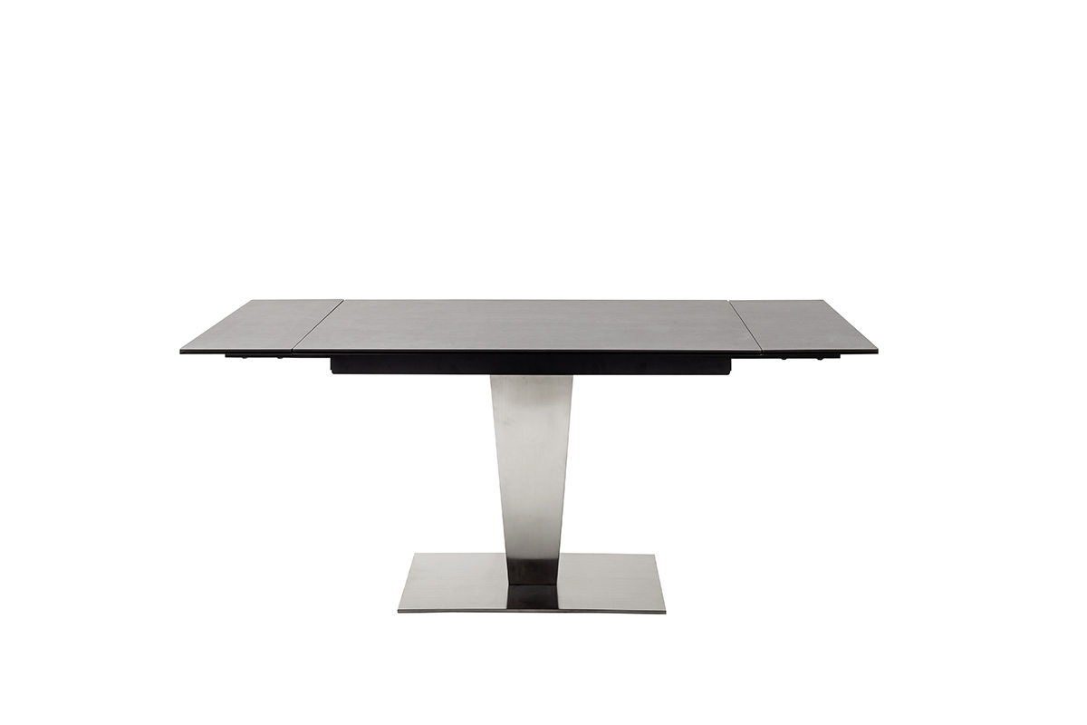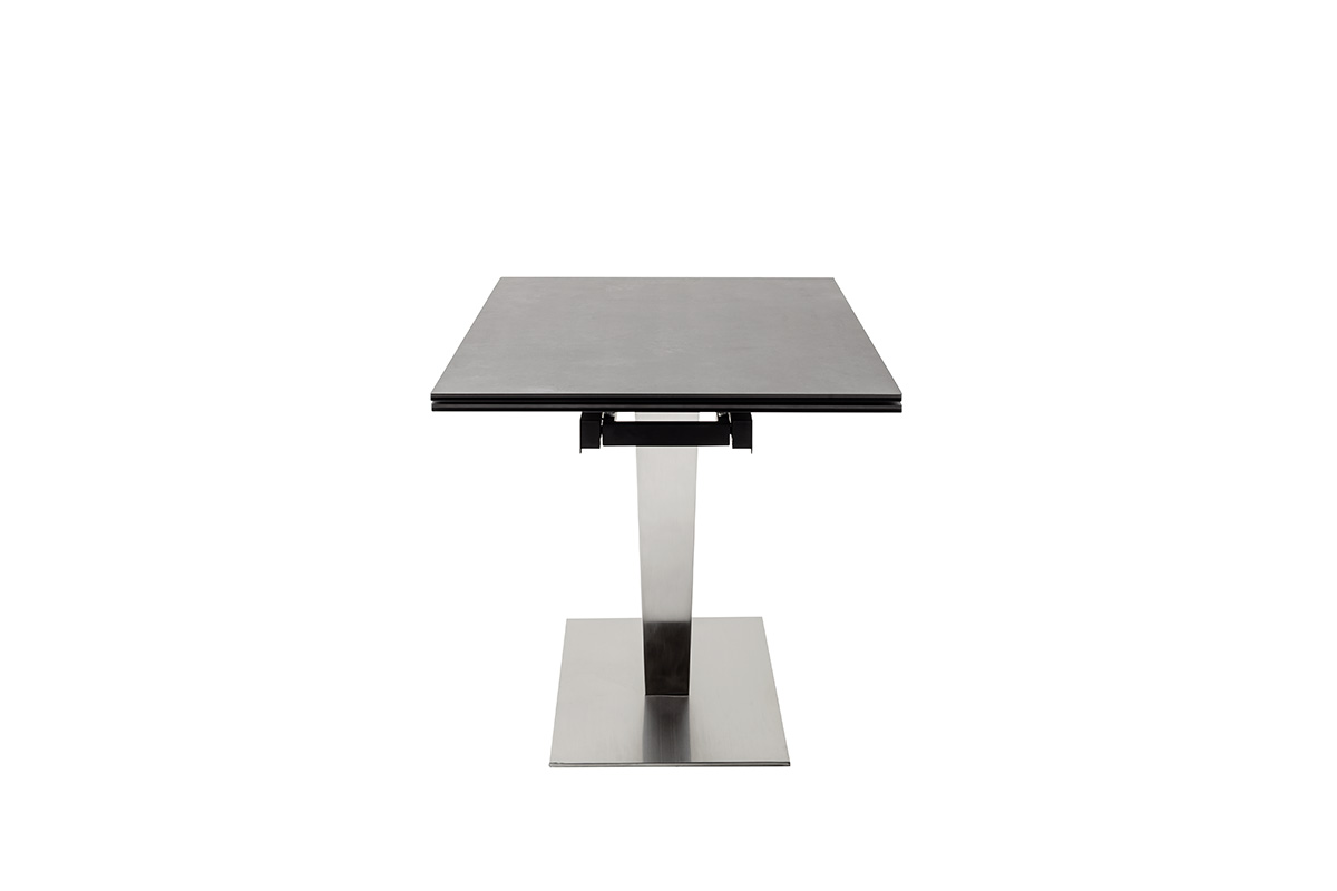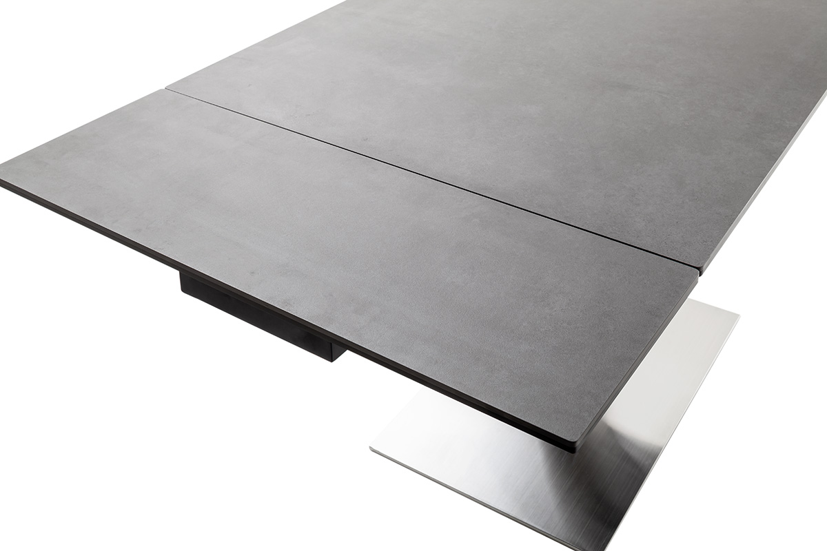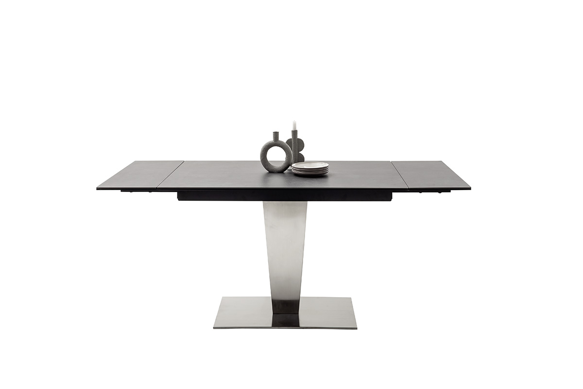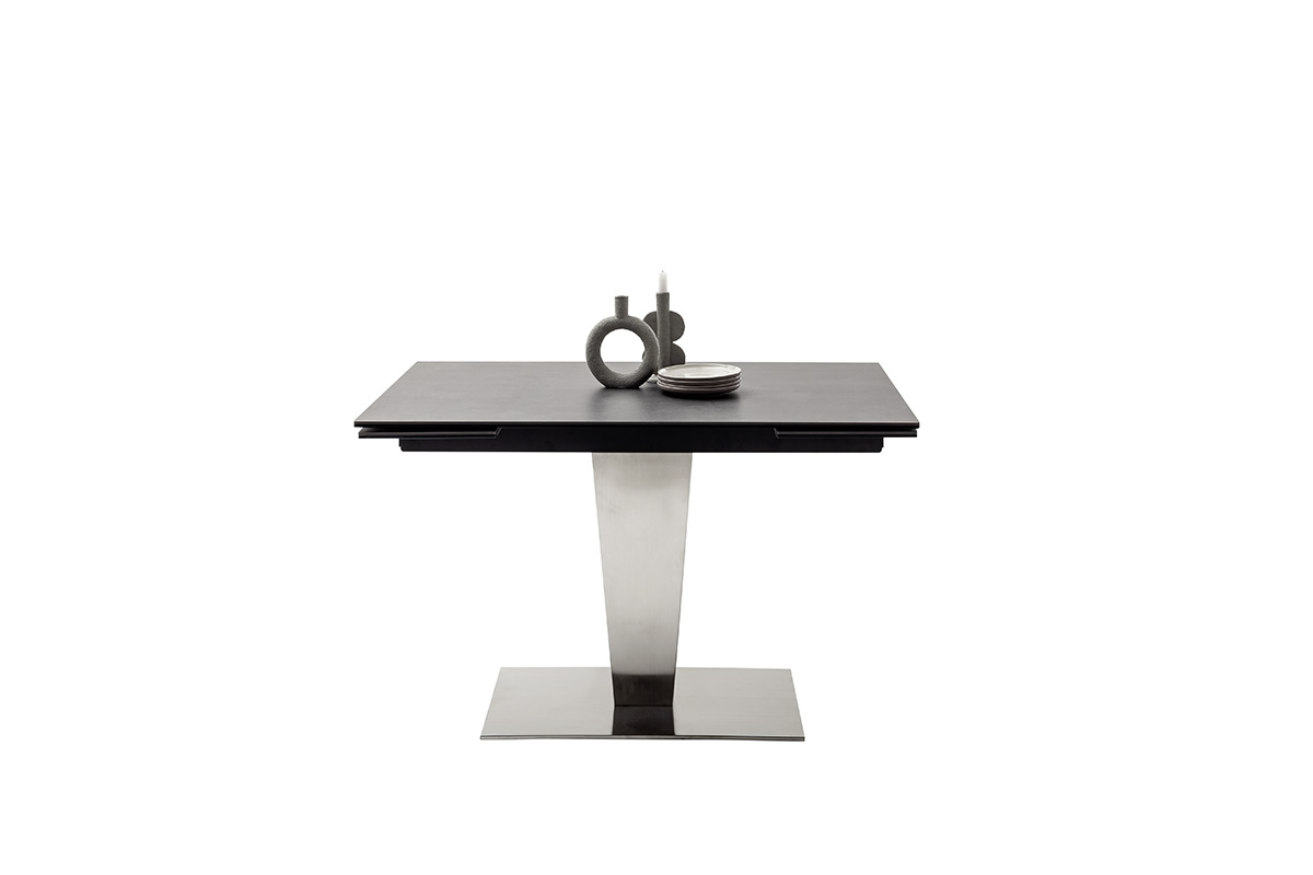 Tugev keskjalaga konstruktsioon on saadaval kahes variandis – harjatud roostevabast terasest või musta mati viimistlusega metallist. Lai alusplaat tagab lauale väga hea stabiilsuse ning jätab samas piisavalt jalaruumi mugavaks istumiseks.