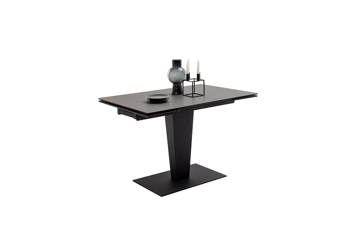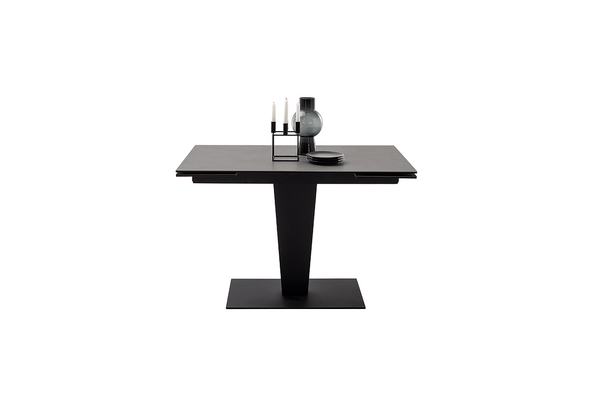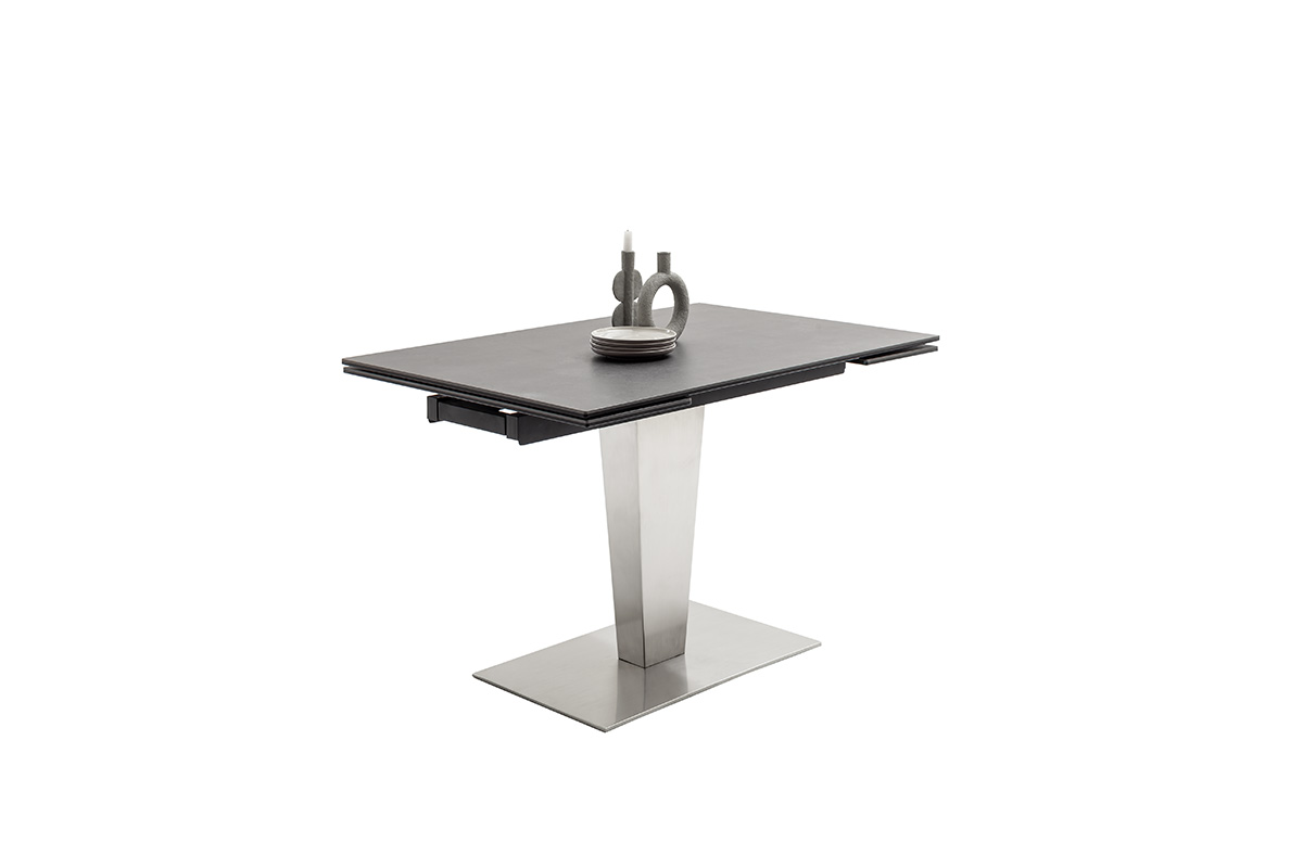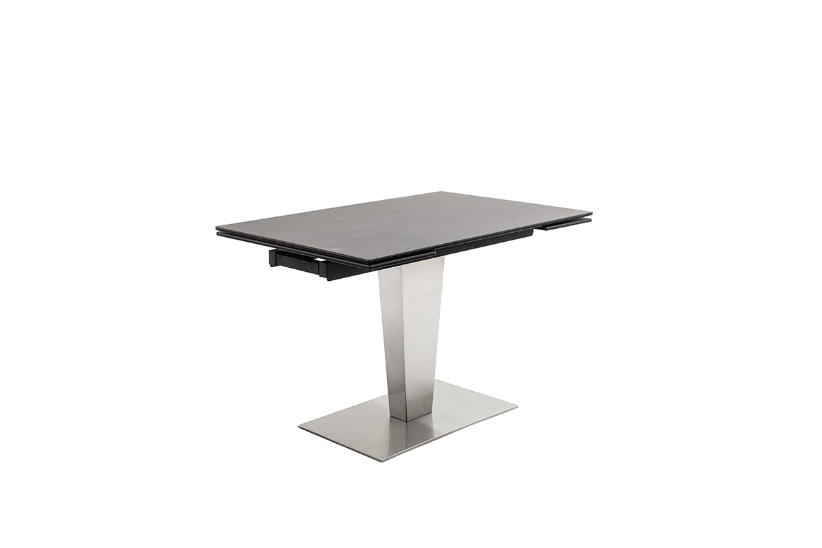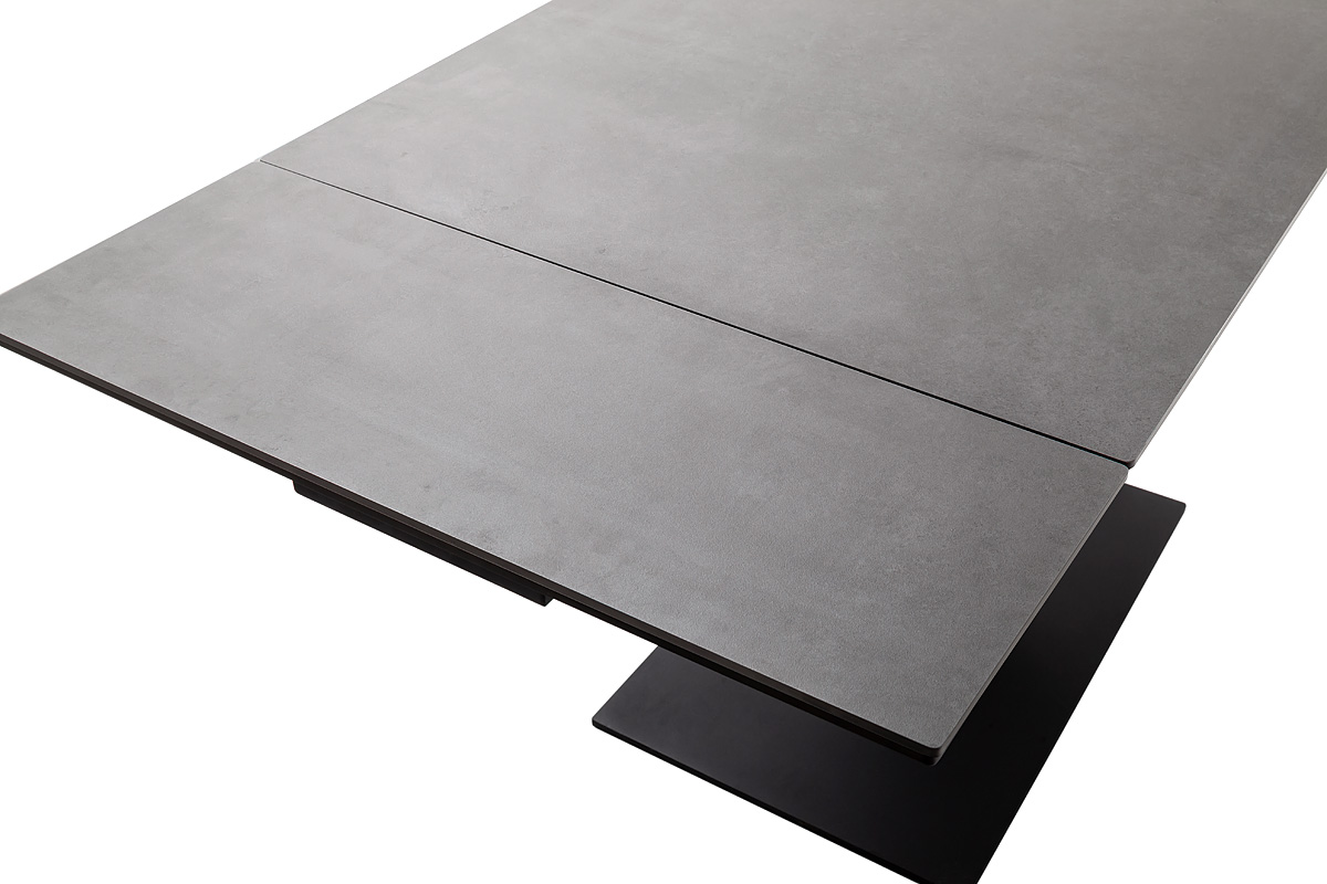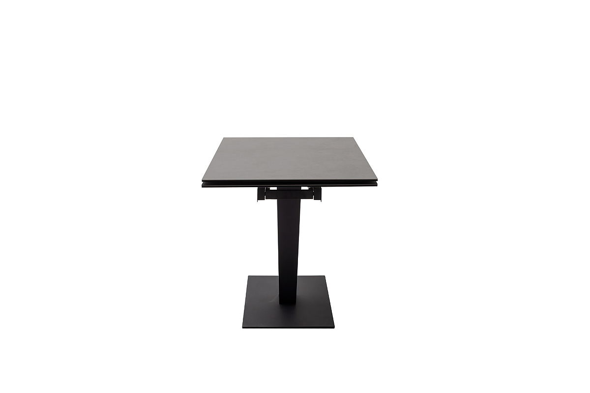 Tugev keskjalaga konstruktsioon on saadaval kahes variandis – harjatud roostevabast terasest või musta mati viimistlusega metallist. Lai alusplaat tagab lauale väga hea stabiilsuse ning jätab samas piisavalt jalaruumi mugavaks istumiseks.