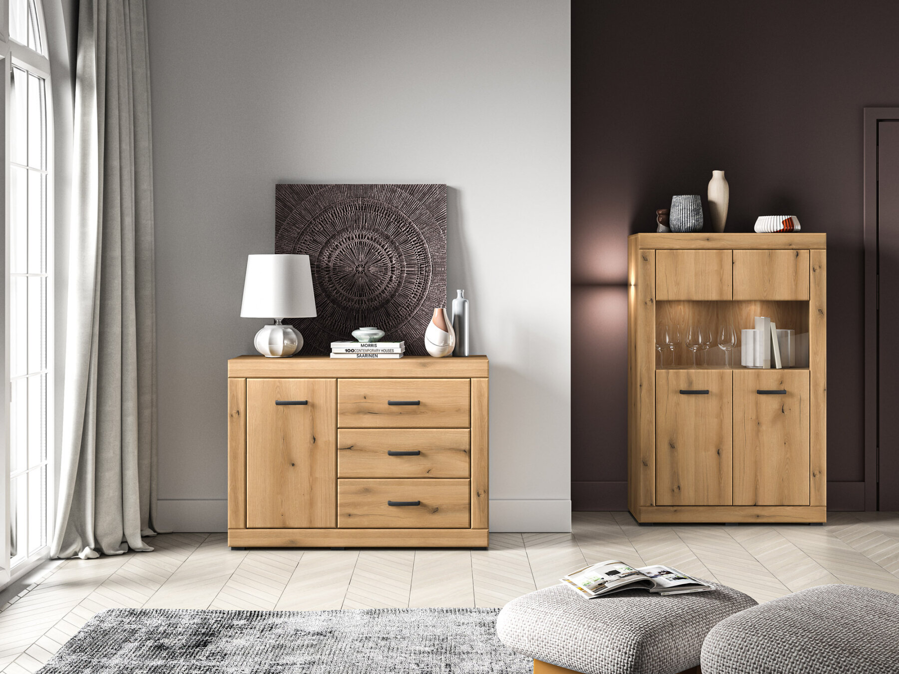 Kompaktne Toora 05 kummut on täiuslik hoiustamislahendus. Kapiukse taga on kaks avarat sektsiooni, kus saate hoiustada riideid, rätikuid või lauanõusid. Paremal küljel on kolm sahtlit, mis sobivad ideaalselt dokumentide või kodutekstiilide hoiustamiseks. Lai ülemine pind on täiuslik koht elegantsete vaaside või reisimeenete eksponeerimiseks.