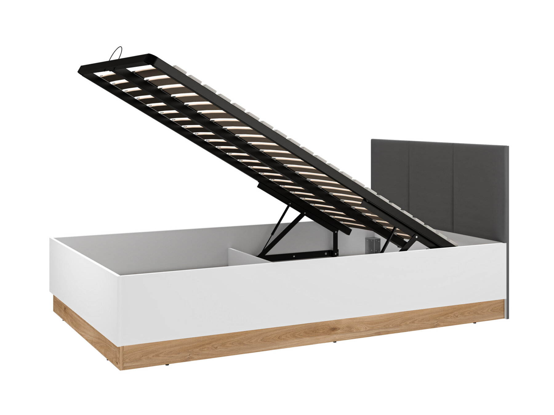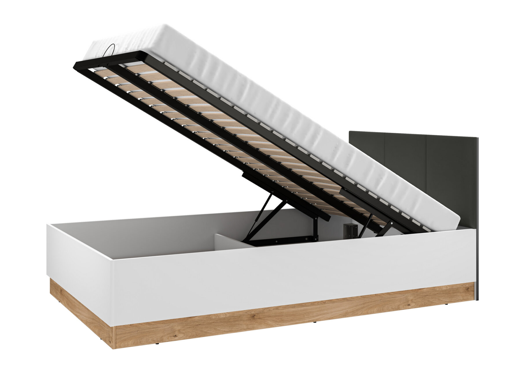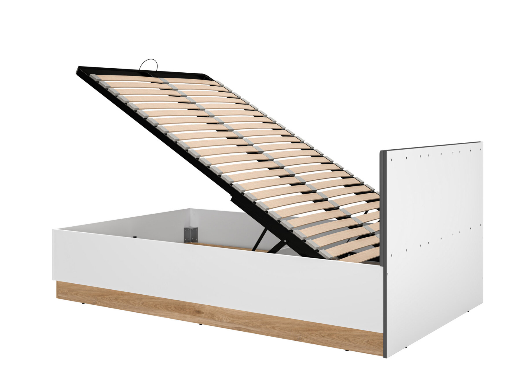 Voodi on varustatud standardse tõsteraamiga, mis tagab lihtsa ja kiire ligipääsu kogu voodi ulatuses paiknevale mahukale panipaigale.